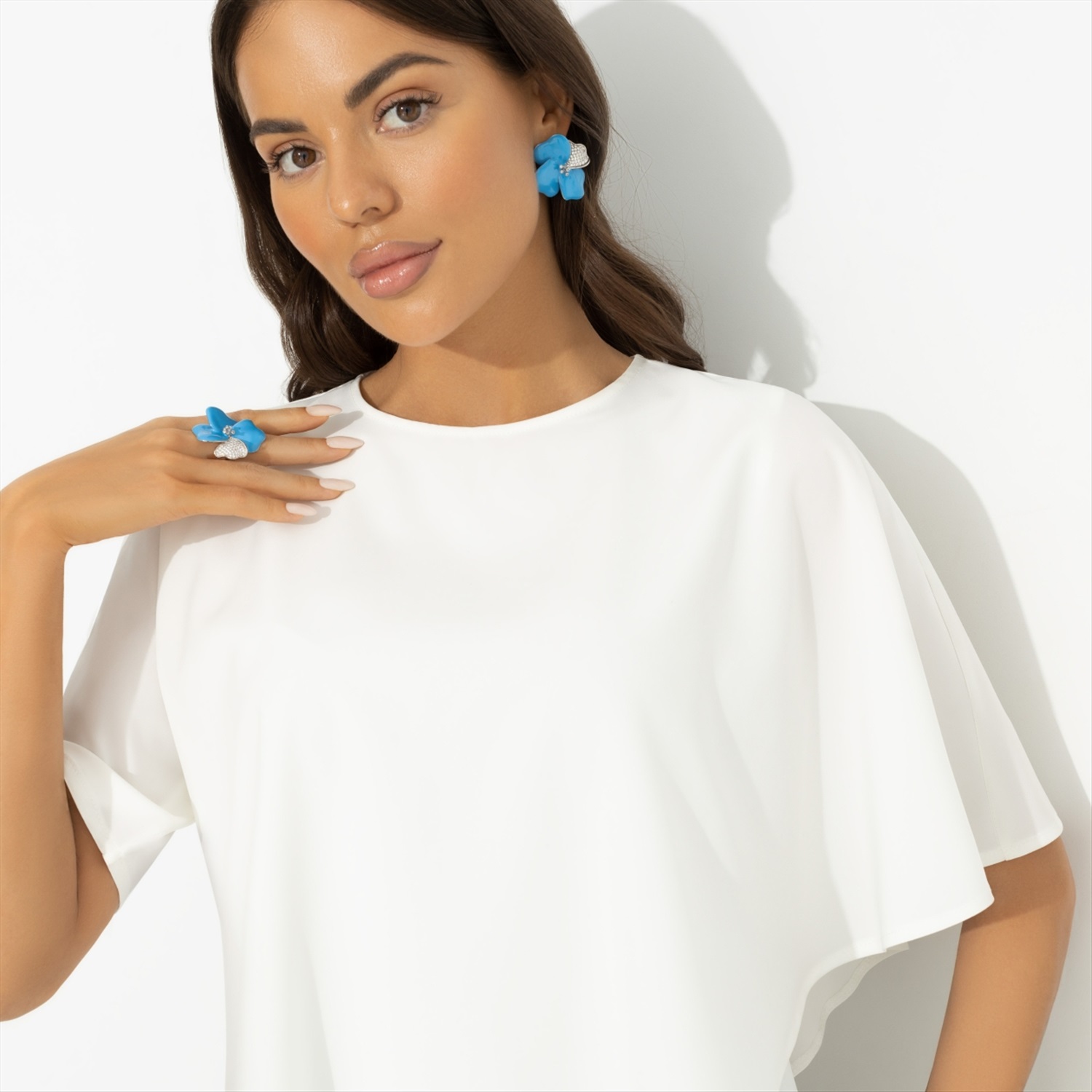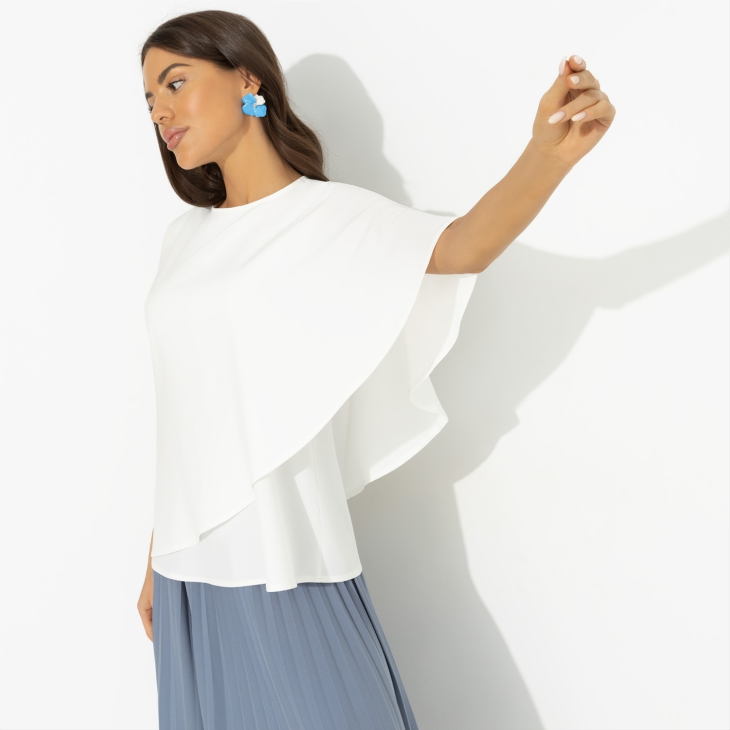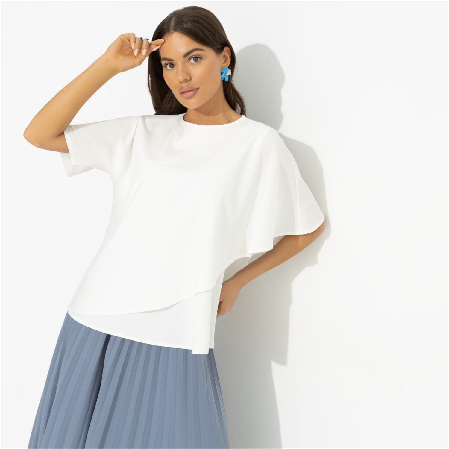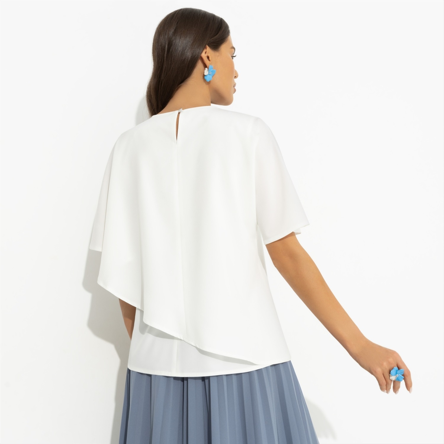 Отличница по жизни – это про тебя. Идеальная семья, работы мечты и безупречный гардероб. О чем еще мечтать?! Разве что о новой блузе CHARUTTI и об отпуске с подругами без мужей и детей. Не всегда же быть хорошей девочкой. Блуза свободного асимметричного силуэта. Эффект многослойности. Изделие застегивается на деликатную пуговицу по спинке.