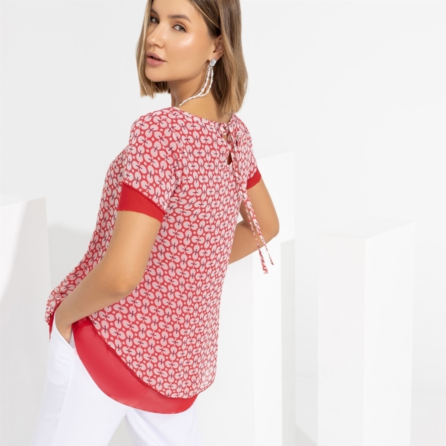 Состав: «Шифон», «сетка-стрейч» (95% п/э, 5% спандекс) Плотность ткани: Тонкая Тип ткани: Трикотаж, текстиль Вид застежки: Завязки Дополнительный цвет ткани: Белый Карманы: Нет Основной цвет ткани: Красный Отрезная талия: Нет Подклад: Есть Резинка по талии: Нет Рисунок/раппорт: Каждое изделие уникально из-за расположения рисунка на ткани Сезон: Лето Силуэт: Свободный Стиль: Повседневный Параметры модели на фото: