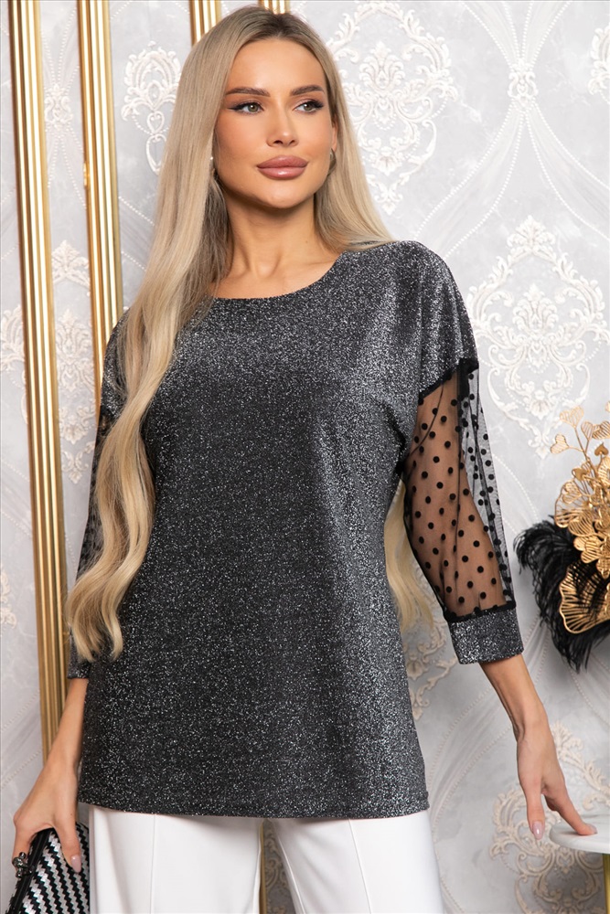 Оригинальный джемпер с рукавами из сетки придаст образу легкости и игривости. Простой и понятный силуэт гармонирует с любыми базовыми вещами вашего гардероба. Свободный крой позволяет деликатно скрыть несовершенства фигуры.