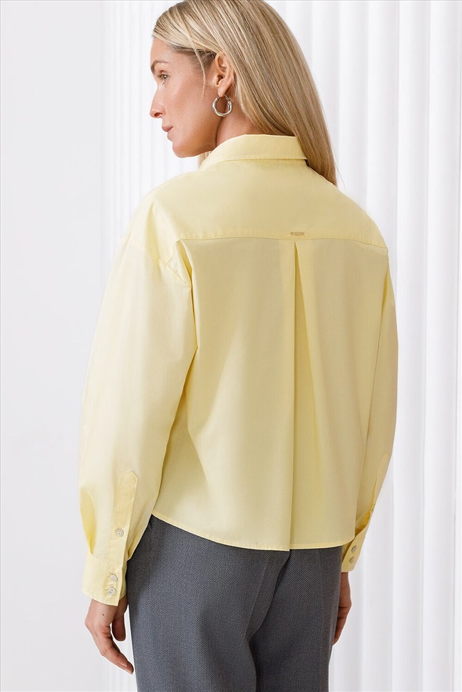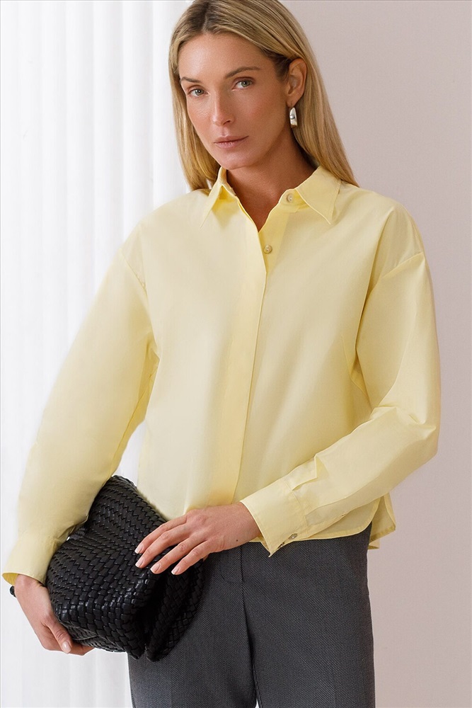 ID товара: 1086515 Состав: 100% Хлопок Сезон: Весна/Лето Длина: Средняя Фасон: Свободный Рукав: длинные Вид застежки: Пуговицы Вырез горловины: Отложной воротничок Основная ткань: Хлопок Стиль: классический Страна бренда: Россия Страна производства: Китай Блузка в банановом оттенке выполнена из 100% поплина. Укороченная модель с застежкой планкой – идеальное решение для лаконичного образа. Будет одинаково хорошо смотреться с широкими брюками, свободными джинсами, пышной юбкой или кюлотами. Комментарии к товару