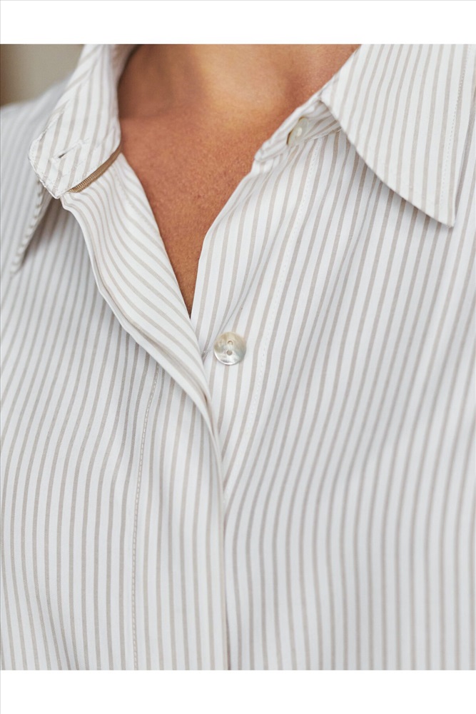 ID товара: 1086516 Состав: 55% Вискоза, 45% Полиэстер Сезон: Весна/Лето Длина: Укороченная Фасон: Свободный Рукав: длинные Вид застежки: Пуговицы Вырез горловины: Отложной воротничок Рисунок: Полоски Декоративные элементы: Принт Основная ткань: Вискоза Стиль: классический Страна бренда: Россия Страна производства: Китай Блузка в сдержанную бежево-белую полоску выполнена из поливискозы. Укороченная модель с застежкой планкой – идеальное решение для лаконичного образа. Будет одинаково хорошо смотреться с широкими брюками, свободными джинсами, пышной юбкой или кюлотами. Комментарии к товару