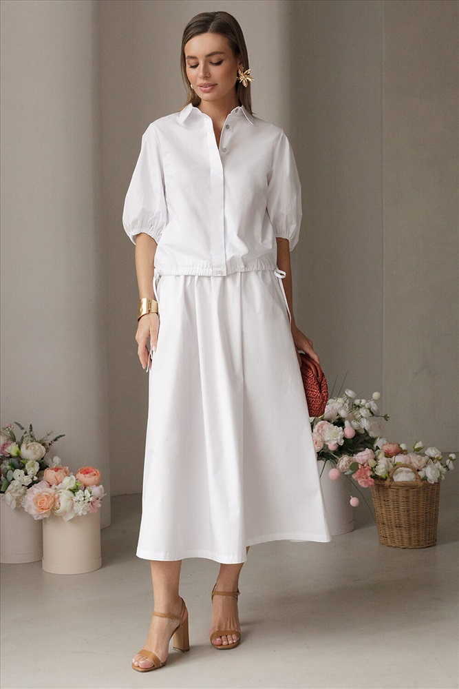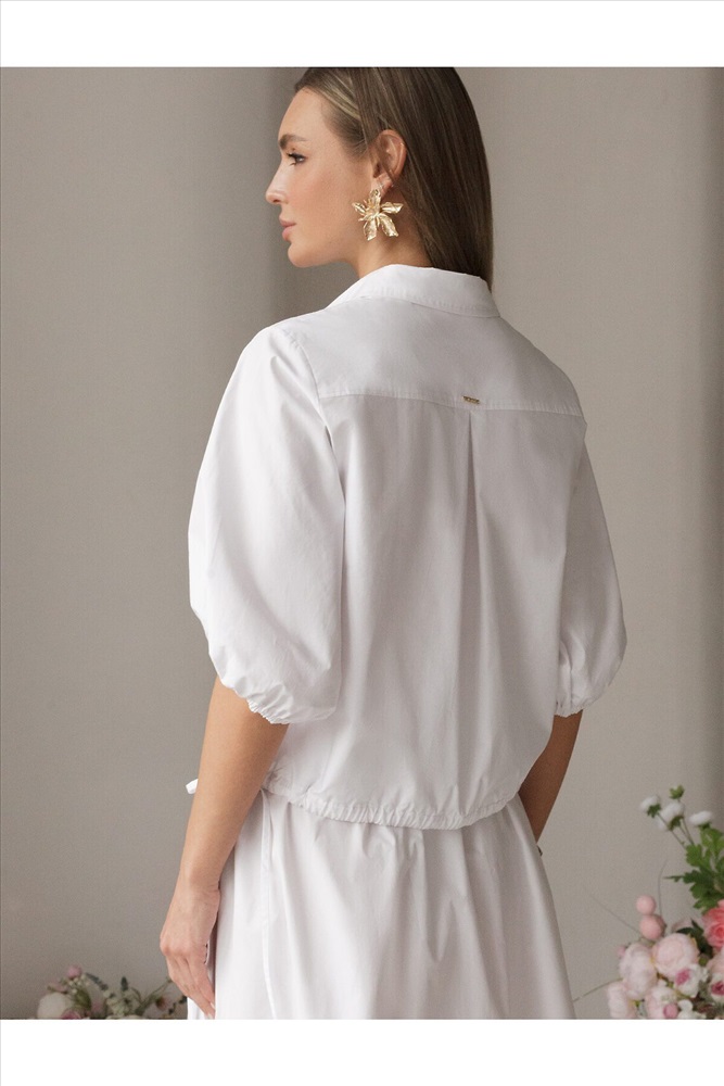ID товара: 1129038 Состав: 100% Хлопок Сезон: Весна/Лето Длина: Укороченная Фасон: Свободный Рукав: Ниже локтя Вид застежки: Пуговицы Вырез горловины: Отложной воротничок Основная ткань: Хлопок Стиль: Романтический Страна бренда: Россия Страна производства: Китай Укороченная блузка с пышными рукавами-фонариками выполнена из легкого хлопкового поплина. Супатная застежка на пуговицы из натурального перламутра. Внизу кулиса с лентами из основного полотна. В изделии будет комфортно, даже в самое жаркое время года. Подходит для любой фигуры. Сочетается в костюме с кюлотами D24.233 и юбкой D26.179 Комментарии к товару