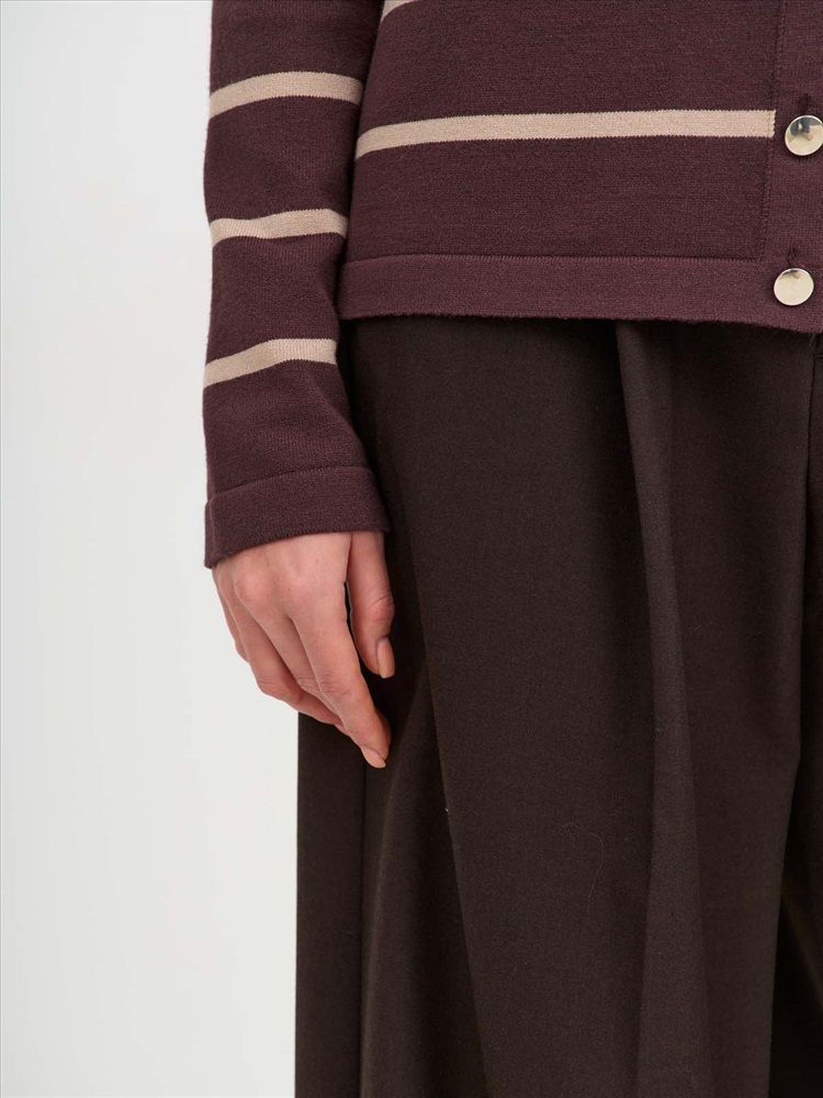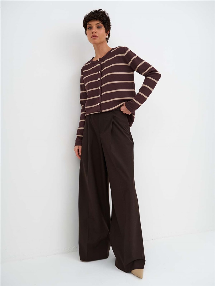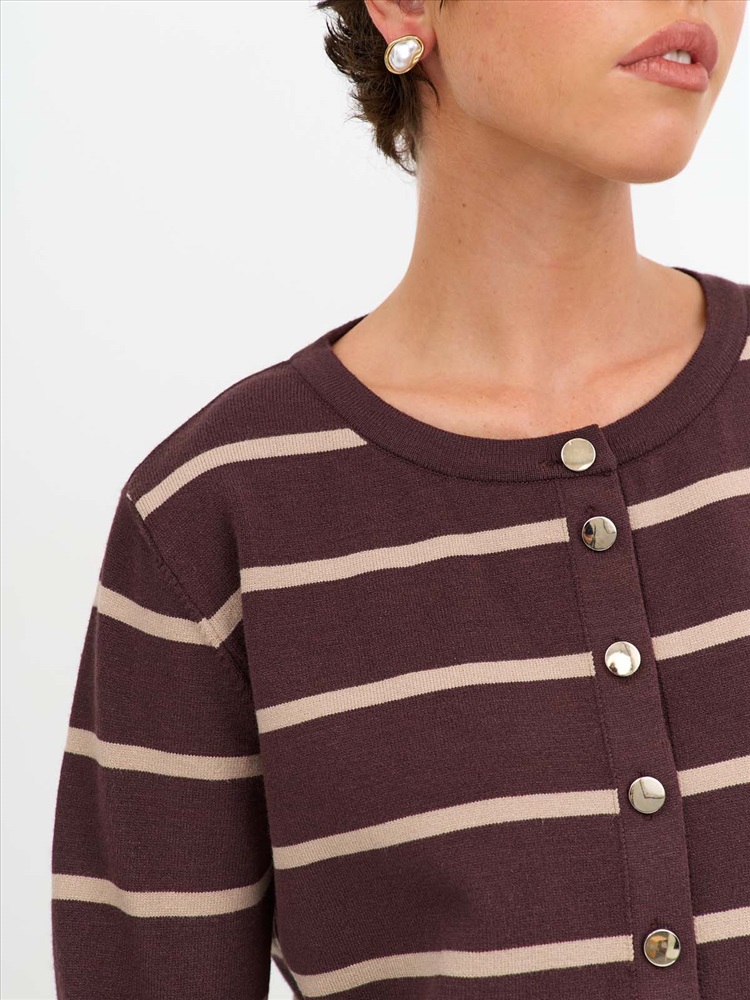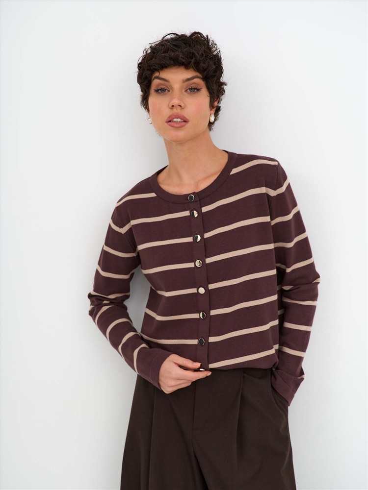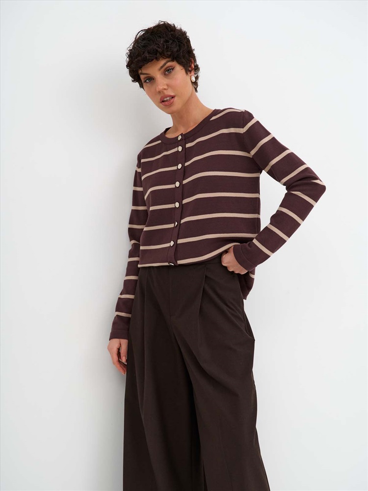 Блузка на пуговицах в полоску – нескучная база, которая легко комбинируется с образами любых стилей. Модель изготовлена из плотного тянущегося трикотажа, который мягко прилегает и не колется. Сочетайте с брюками и юбками на высокой посадке.