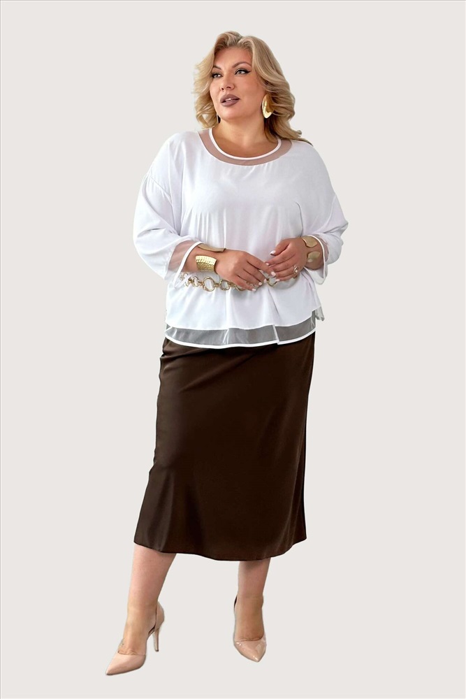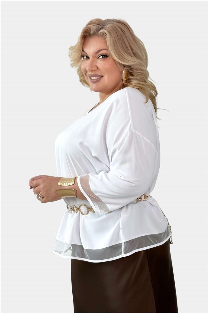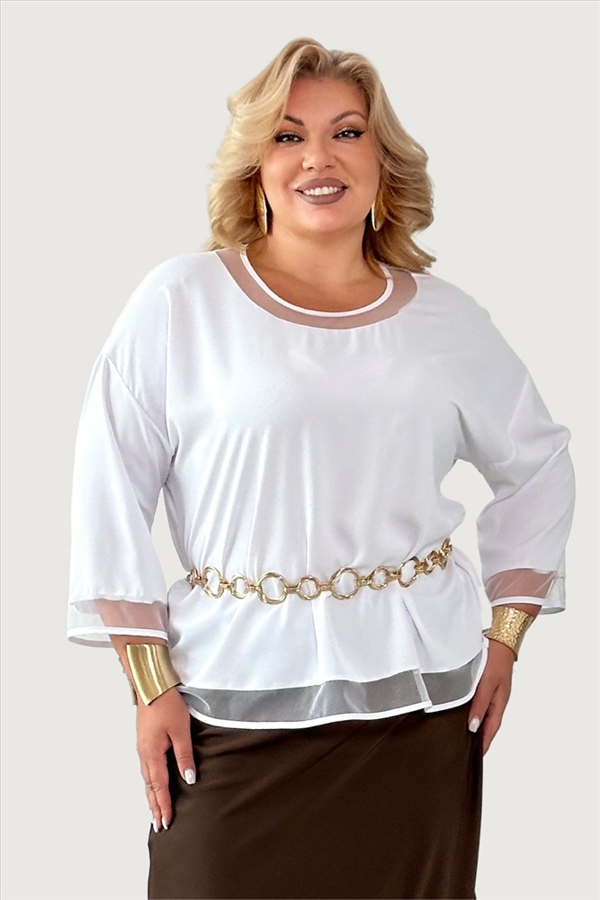 Блузка с круглым вырезом с прозрачной вставкой белая
