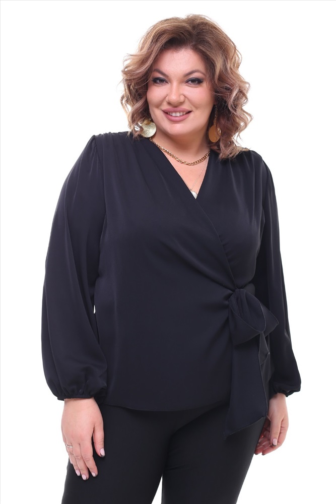 Блузка с запАхом с завязкой сбоку однотонная черная