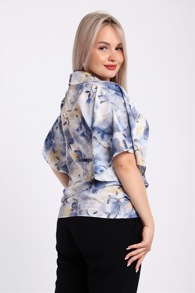 Очаровательная, очень женственная блузка из легкой, струящейся ткани - индо. В составе ткани есть вискоза, поэтому она абсолютно не электризуется и не мнется. Благодаря крою летучая мышь блузка будет отлично смотреться на любой фигуре, скроет недостатки и подчеркнет достоинства. Ее можно комбинировать и с юбкой, и с брюками. Воротник хомут добавляет образу элегантности. Базовые расцветки изделия легко впишутся в ваш гардероб.