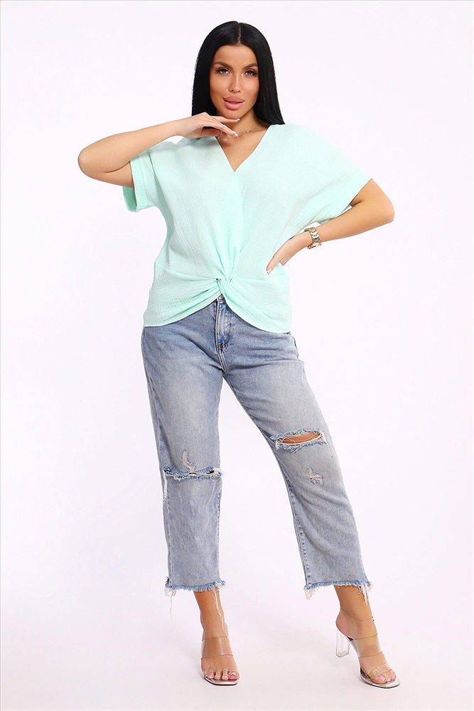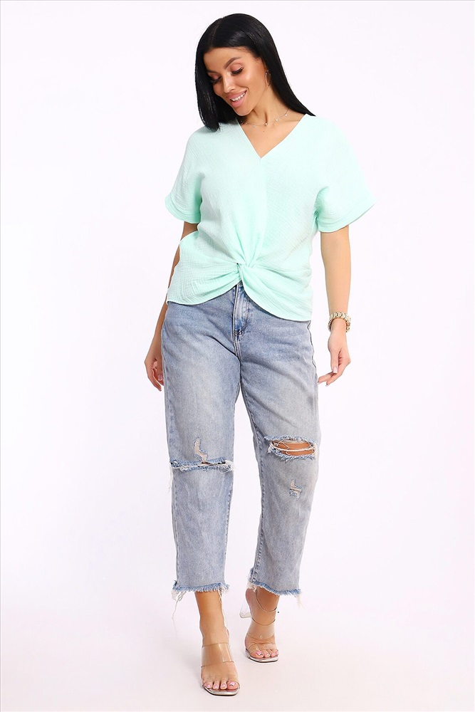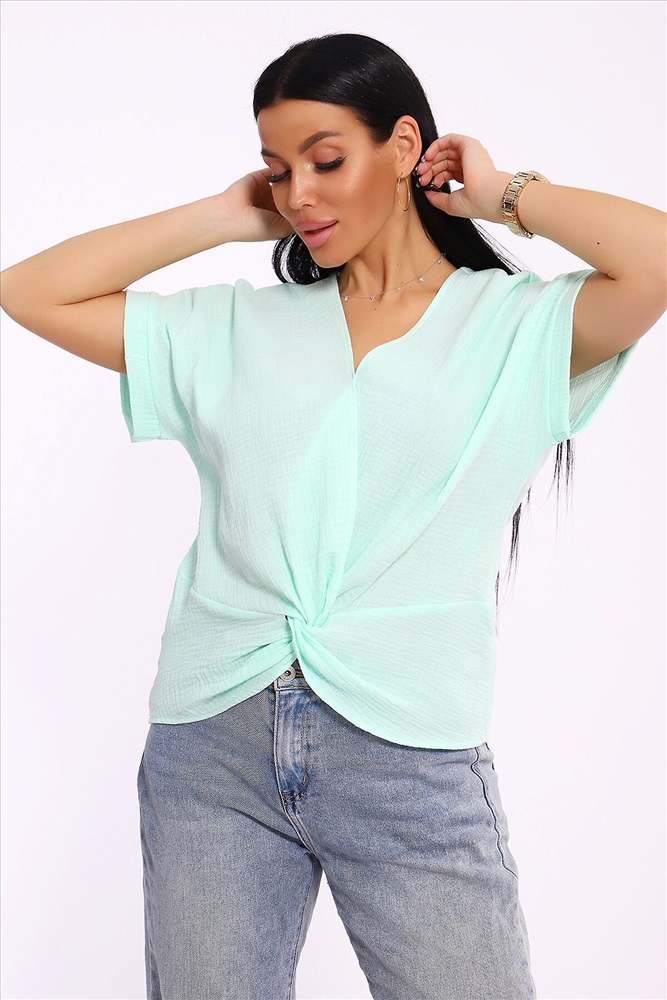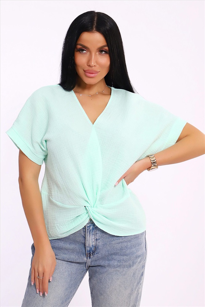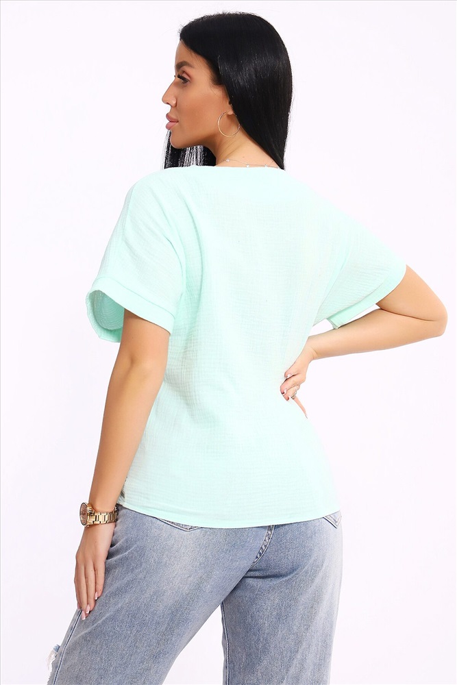 ID товара: 1090401 Состав: Хлопок 100% Сезон: Весна/Лето Длина: Средняя Фасон: Полуприлегающий Рукав: короткие Вырез горловины: V-образный Основная ткань: Хлопок Стиль: повседневный Вид ткани: Муслин Страна бренда: Россия Страна производства: Россия Легкая и невесомая очаровательная блузка из муслина. 100% хлопок в составе муслина позволит комфортно себя чувствовать в летнюю жару. Оригинальный крой блузки скроет недостатки и подчеркнет достоинства фигуры. Спущенный рукав обеспечит свободу движения, полочки, запахиваясь друг на друга, образуют интересные складки спереди. Длина изделия до линии бедра. Блузка будет хорошо сочетаться с джинсами, летними брюками и шортами, с юбкой. Комментарии к товару