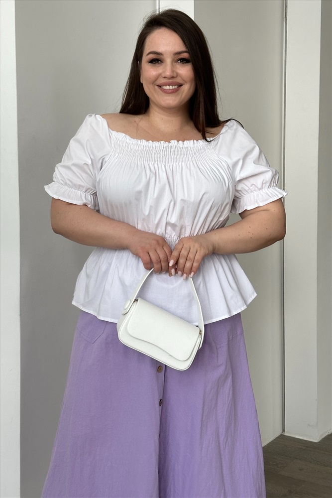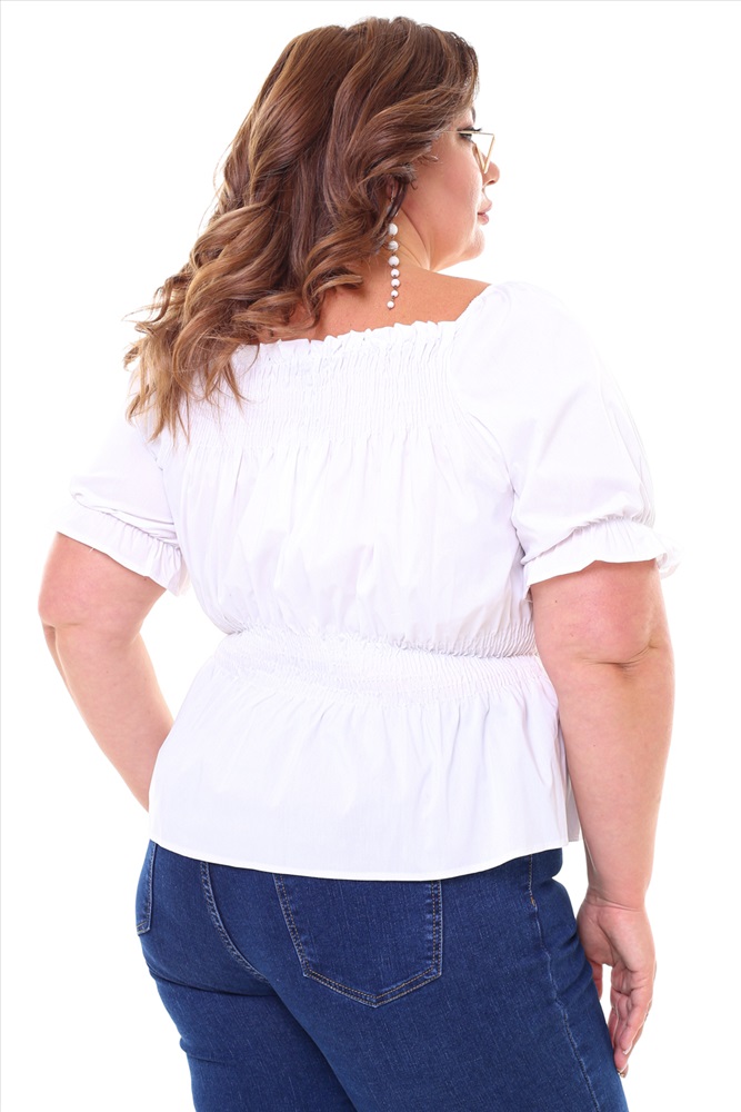 Блузка "рукав фонарик" со сборкой на талии белая