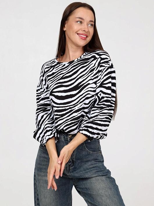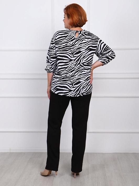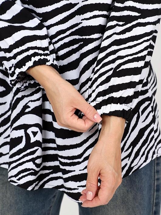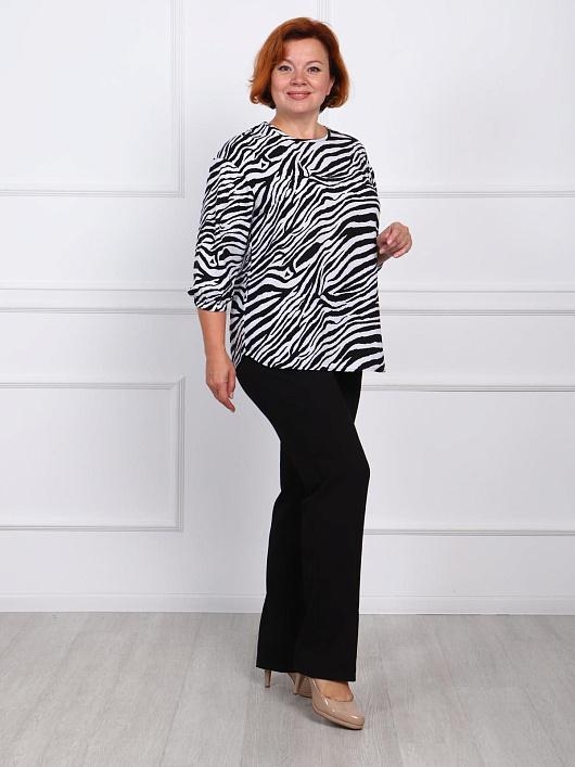 Женская блузка из штапеля прямого силуэта с круглым вырезом горловины под окантовку. Спущенное плечо, рукав втачной 7/8. Низ рукава - на резинке.
