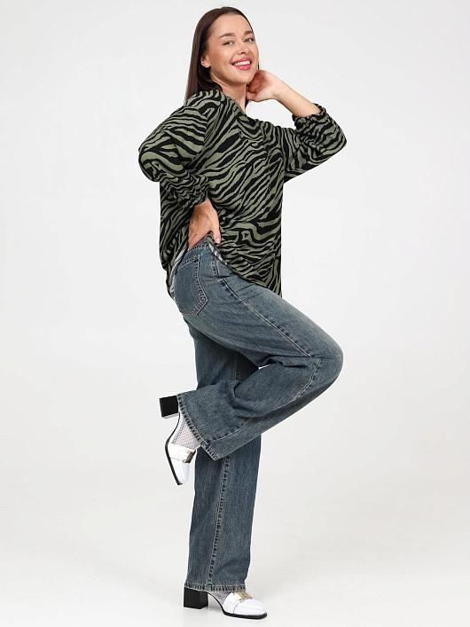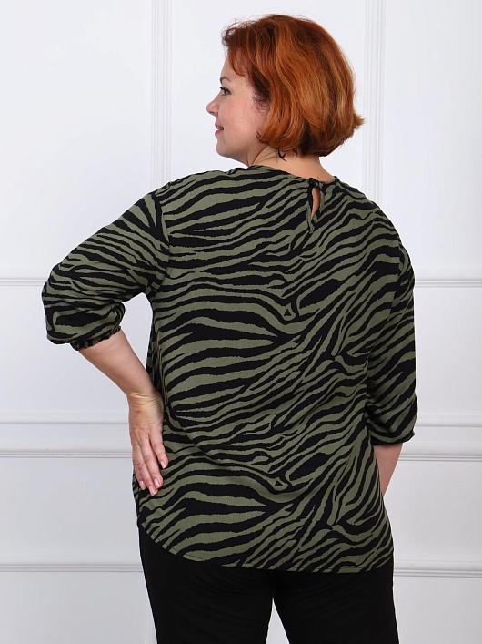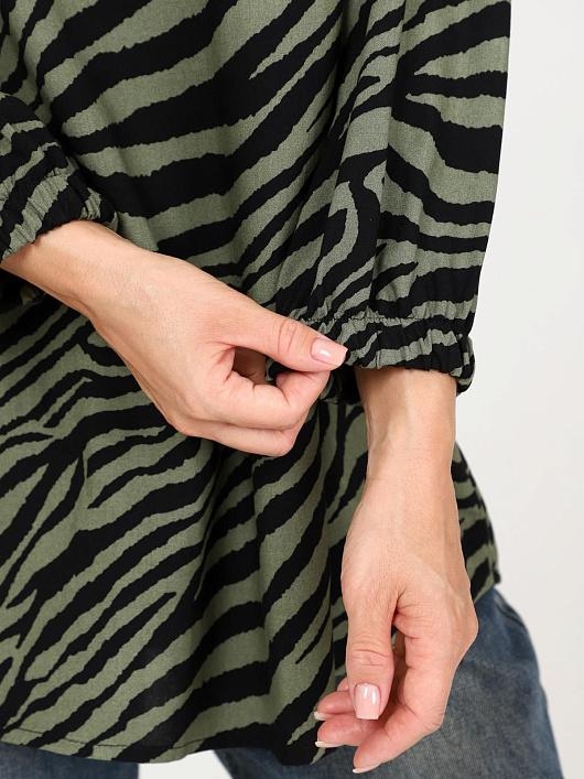 Женская блузка из штапеля прямого силуэта с круглым вырезом горловины под окантовку. Спущенное плечо, рукав втачной 7/8. Низ рукава - на резинке.