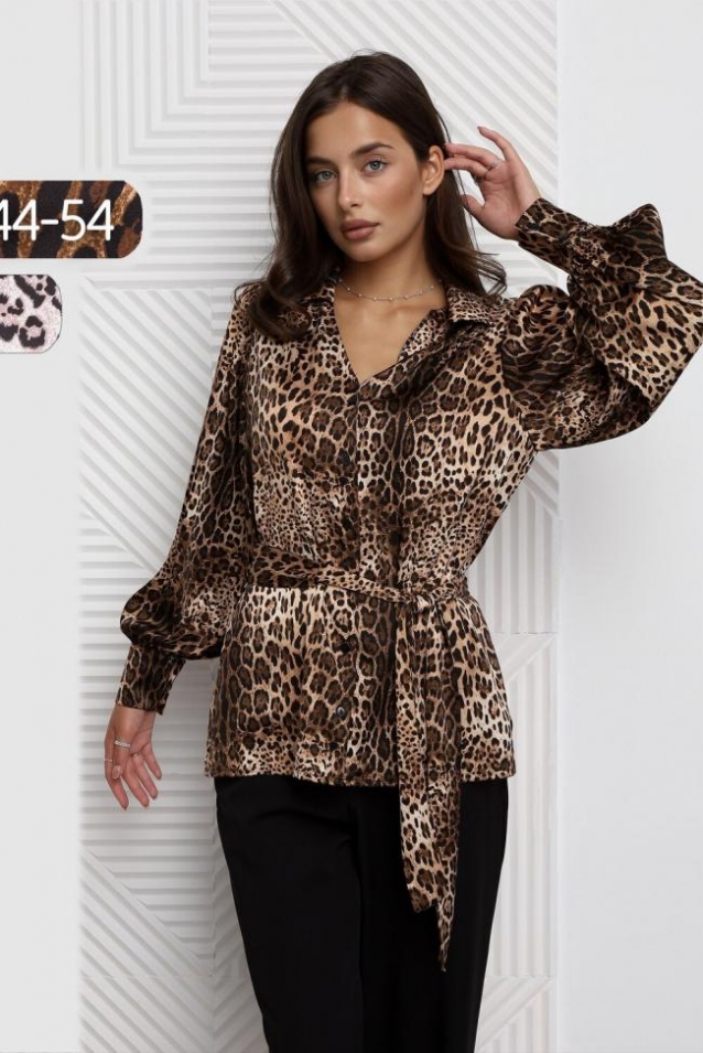 Блузка с поясом от российского производителя бренда женской одежды! Блуза прямого силуэта с V-образным вырезом, застегивается на пуговицы. Данная модель свободного кроя имеет леопардовый принт, в боковых швах имеются разрезы, пояс съемный. Рукав полной длины внизу имеет две складки, разрез и манжету, которая застегивается на две пуговицы. Необычное дизайнерское решение позволило совместить элегантную классику и эффектный стиль. Леопардовая рубашка женская станет отличным дополнением к любому гардеробу. Шелковая модель имеет в комплекте пояс, что подчеркивает талию и создает элегантный силуэт. Стильная блузка с поясом станет отличным выбором для женщин, стремящихся выглядеть нарядно и модно. Изготовленная из легкой атласной ткани, она обладает свободным кроем оверсайз, что обеспечивает комфорт в носке. Черный и белый цвета отлично подойдут как для праздничного мероприятия, так и для офисных встреч. Эта рубашка дополнена рукавами-фонариками, что придает образу романтичности и элегантности. Пояс позволяют регулировать силуэт, создавая акцент на талии. Также присутствует стильный леопардовый принт, который добавляет нотку дерзости в наряд. Блуза идеально подходит для школьной формы или делового стиля. Она станет универсальным элементом гардероба ее можно сочетать с юбками или брюками, создавая разнообразные образы на лето и вечеринки. Праздничные выходы станут еще ярче с этой модной одеждой. Вам понравится удобство и легкость этой женской рубахи! Стройнящий силуэт позволит чувствовать себя уверенно и привлечет внимание окружающих. Нарядная блузка доступна в больших размерах плюс сайз - 50, 52 и 54, будет шикарно смотреться в любом возрасте, подойдет для полных девушек.