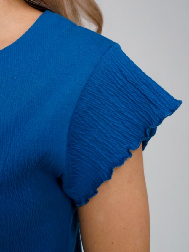 Блузка с свободным романтичным рукавом - это идеальный выбор для летнего гардероба современной женщины. Эта стильная блузка выполнена из хлопкового полотна с эффектом жатки, что обеспечивает комфорт и приятные тактильные ощущения в жаркую погоду. Классическая длина придает блузке универсальность, позволяя легко комбинировать ее с различными предметами одежды. Она станет незаменимой вещью для офиса, создавая элегантный и комфортный образ. Ее расцветки прекрасно сочетаются с любыми цветами, а натуральный состав гарантирует приятную прохладу в летний день.