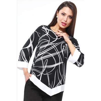 Цвет: Чёрный Асимметричная блузка с принтом — оригинальная модель, которая займет почетное место как в повседневном, так и в деловом гардеробе стильной женщины. Полуприлегающий крой, округлый вырез и рукава ¾ придают легкости и элегантности. Асимметричный низ — не только изюминка блузки, но и хит сезона, который сразу укажет на то, что женщина в курсе последних модных тенденций. Благодаря свободному крою и приятной расцветке модель будет прекрасно смотреться на женщинах любой комплекции, не подчеркнет нюансы фигуры и не исказит пропорции. Блузка выполнена из легкой, приятной на ощупь ткани, которая не просвечивает и прекрасно переносит деликатную стирку при температуре до 30 градусов без отжима. Длина: