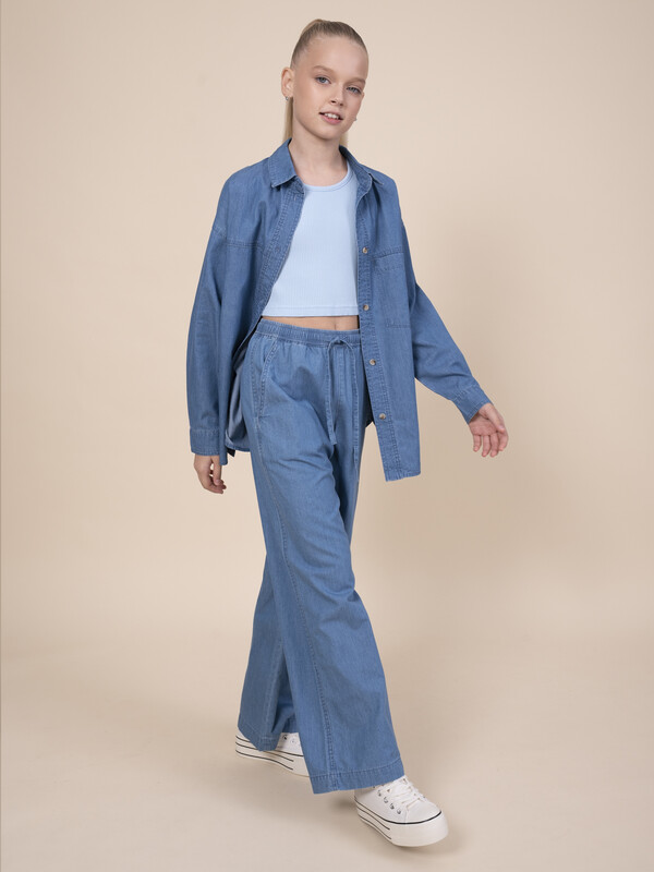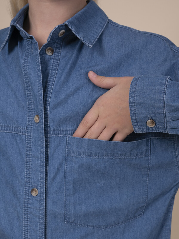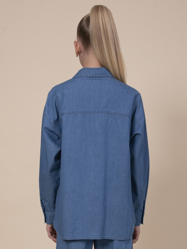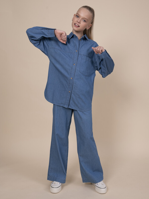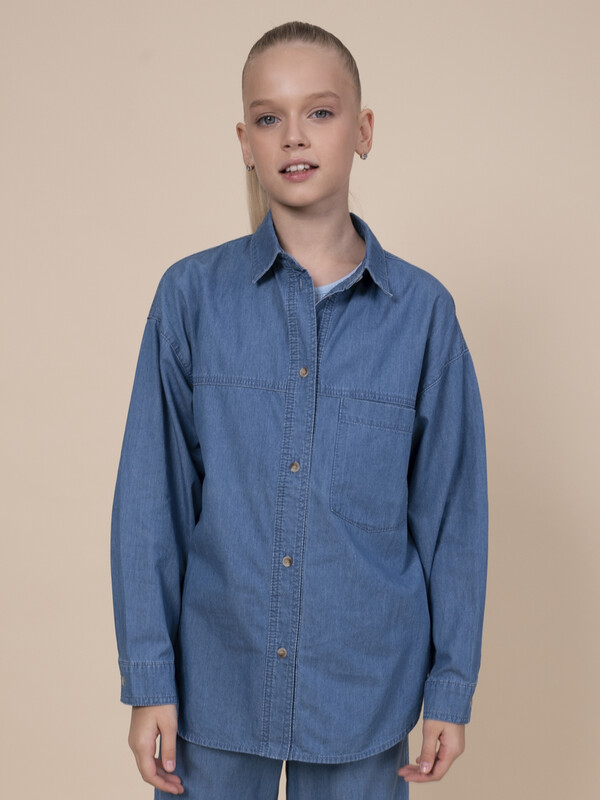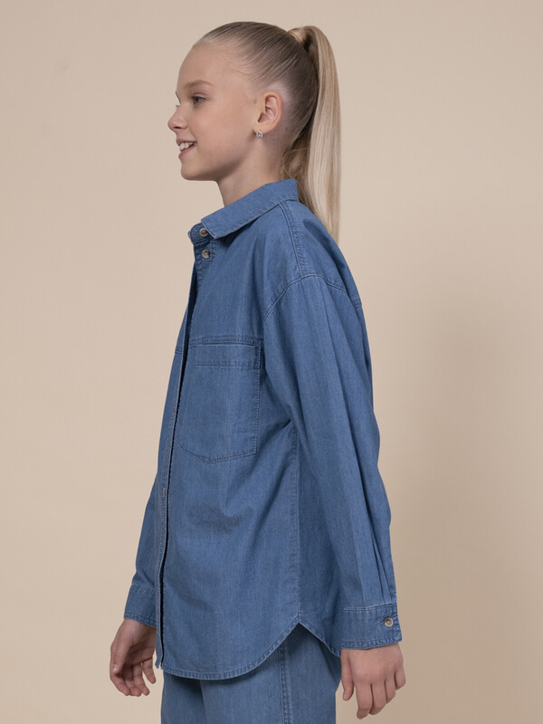 Джинсовая рубашка для девочки. Свободная рубашка прямого кроя с классическим отложным воротником и спущенным плечом подарит ребёнку комфорт и не будет стеснять его движений. Модель застёгивается на пуговицы по переду. По низу рукавов манжеты на пуговицах. Спереди слева удобный накладной карман для мелочей. Фигурная линия низа, кокетки по переду и спинке придают изысканности. Изделие лаконичного дизайна, без принта. Модель неприхотлива в уходе. В составе ткани 100% высококачественного хлопка — рубашка мягкая и воздухопроницаемая. Изделие выполнено в джинсовом синем цвете с актуальным эффектом мягкой варки garment wash. Рубашка легко сочетается с различными брюками, джинсами, легинсами. Размерная линейка: 3 (98); 4 (104); 5 (110); 6 (116); 7 (122); 8 (128); 9 (134); 10 (140); 11 (146). Идеальная рубашка на девочку дошкольного и младшего школьного возраста, а также девочку-подростка. Рубашка джинсовая подходит для круглогодичной носки: летом, осенью, зимой, весной и демисезон. Её можно носить в детский сад, на прогулки, отдых, а также дома. В прохладную погоду летом рубашку можно надеть на футболку или топ, а зимой она послужит средним слоем одежды. Модная рубашка — отличный подарок дочери, внучке или сестре на любой праздник или просто в качестве знака внимания и заботы. Выбирайте нужный размер по таблице размеров на фото. Цвет товара на экране вашего устройства может отличаться от цвета изделия вживую.