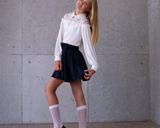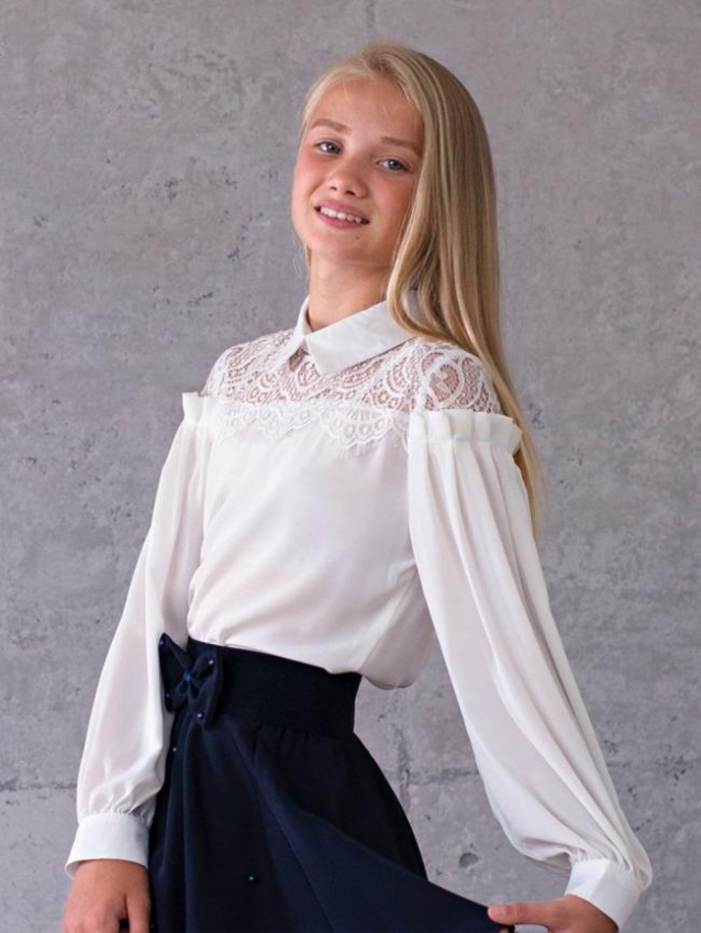 Блузка школьная для девочки с длинными рукавами, округлым воротничком и застежкой на пуговицах. Мягкий летящий материал и изысканные детали делают её стильной и удобной. Блуза украсит и дополнит любой образ в школу. Блузки хорошо смотрятся в сочетании с юбками, сарафанами и брюками. Блуза для девочки подходит для школы и праздников, как повседневная. Будет идеально смотреться на школьной линейке 1 сентября, день учителя, 8 Марта, выпускной или утренник. Школьная форма отлично сидит по фигуре на девочке, движения в ней комфортные. Кофту для девочки можно носить без дополнительной глажки, но рекомендуем отпаривать рукава блузы. Хорошо сохраняет цвет и форму при активной носке и после многократных стирок. Нарядная женская рубашка для девочки подходит под юбку, брюки, жакет, пиджак (детская одежда для подростков сочетается со школьной блузкой). Светлая блузка идеально подойдет, как круглогодичная одежда для школы. Белая подростковая блузка для девочки свободного силуэта. Блузка СольПерец длинный рукав. Подростковая блузка, свободного силуэта для девочки. Модель декорирована гипюром, пышные рукава на манжете украшены рюшей. Мягкая, воздушная ткань шифон хорошо драпируется, не тянется и не мнется, устойчива к разрывам. Прекрасно вольется как в школьный, так и в праздничный гардероб.