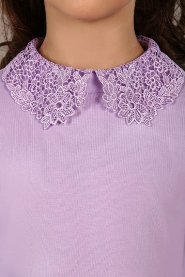 Школьные блузки для девочек основа, как для повседневного, так и для праздничного наряда. Трикотажная блузка Марта - идеальное сочетание стиля и элегантности. Блузка с длиным рукавом и откидным кружевным воротником - подойдет как одежда для школы с юбкой, сарафаном или брюками.