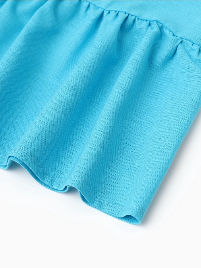 Габариты: 22 x 28 x 0,8 Назначение: Пляж, Повседневная Размер: 30, 32 Возраст, лет: 5 Рост, см: 110 Рекомендации по уходу: Барабанная сушка запрещена, Деликатная стирка при 30 °С, Глажка при 150 °С, Не отбеливать Состав ткани: Лён, Хлопок Страна: Россия В боксе: 48 шт Состав: Хлопок 80%, лён 20% Материалы: хлопок, лён Фасовка: по 1 шт Сертификат: ЕАС Цвет: Голубой Для кого: Для девочки Ткань: Полулён Сезон: Лето Вид застёжки: Пуговицы(-а) Тематика: Однотонная Вырез горловины: Круглый Декоративные элементы: Сборка Покрой: Трапеция Комментарии к товару