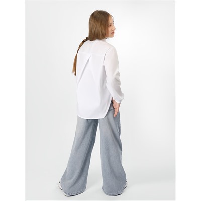 Блузка для девочки Соль&Перец, на пуговицах, из натурального хлопка. Блузка свободного кроя, с удлинённой спинкой. Отложной, фигурный воротник декорирован бусиной со стразами. Пуговицы украшены золотистыми вставками. Классический элемент школьной формы прекрасно дополнит гардероб каждой девочки.