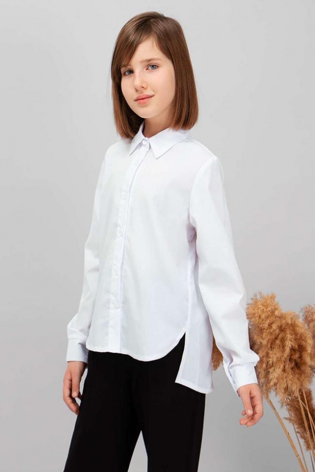Блузка на пуговицах, прямого силуэта, с асимметричной линией низа. Длинные рукава трансформируются в ¾. Модель прекрасно сочетается как с юбкой и сарафаном, так и с брюками, подчеркнет индивидуальный стиль девочки, и разнообразит ее повседневный школьный образ. Размер 128 (рост 128-134 см) длина изделия 44 см, обхват груди 78 см, длина рукава 47 см. Размер 134 (рост 134-140 см) длина изделия 46 см, обхват груди 82 см, длина рукава 49 см. Размер 140 (рост 140-146 см) длина изделия 48 см, обхват груди 86 см, длина рукава 52 см. Размер 146 (рост 146-152 см) длина изделия 51 см, обхват груди 90 см, длина рукава 56 см. Размер 152 (рост 152-158 см) длина изделия 53 см, обхват груди 94 см, длина рукава 58 см. Размер 158 (рост 158-164 см) длина изделия 56 см, обхват груди 96 см, длина рукава 60 см. Размер 164 (рост 164-170 см) длина изделия 58 см, обхват груди 100 см, длина рукава 61 см.