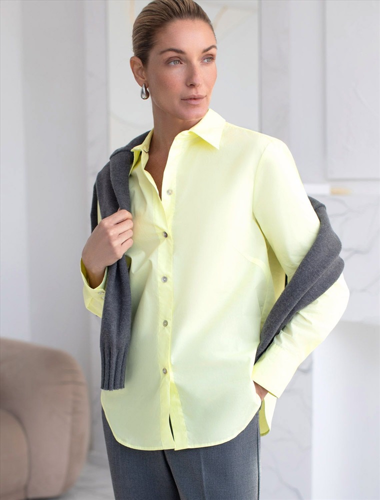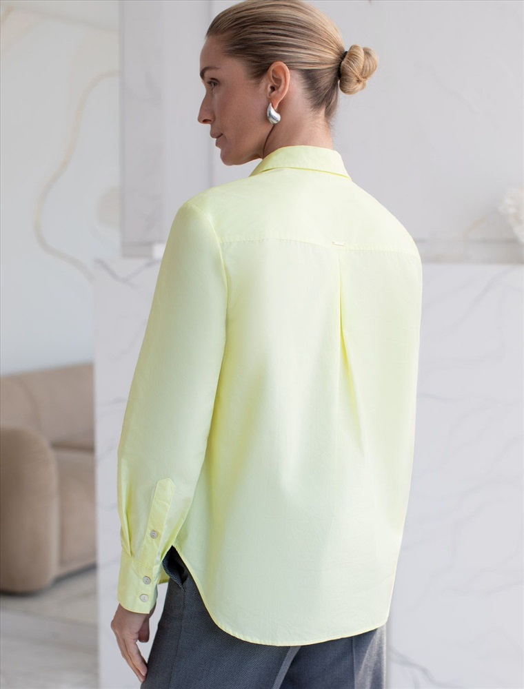 Блузка выполнена из премиального хлопкового поплина. Лаконичная модель с высокими манжетами и пуговицами из натурального перламутра хорошо впишется в любой гардероб и внесет яркий летний акцент в образ. Натуральный состав ткани обладает высокой воздухопроницаемостью и гигроскопичностью. В изделии будет комфортно, даже в самое жаркое время года. Подходит для любой фигуры. На спинке фирменный логотип бренда.