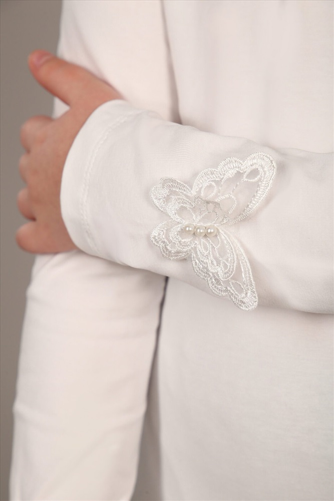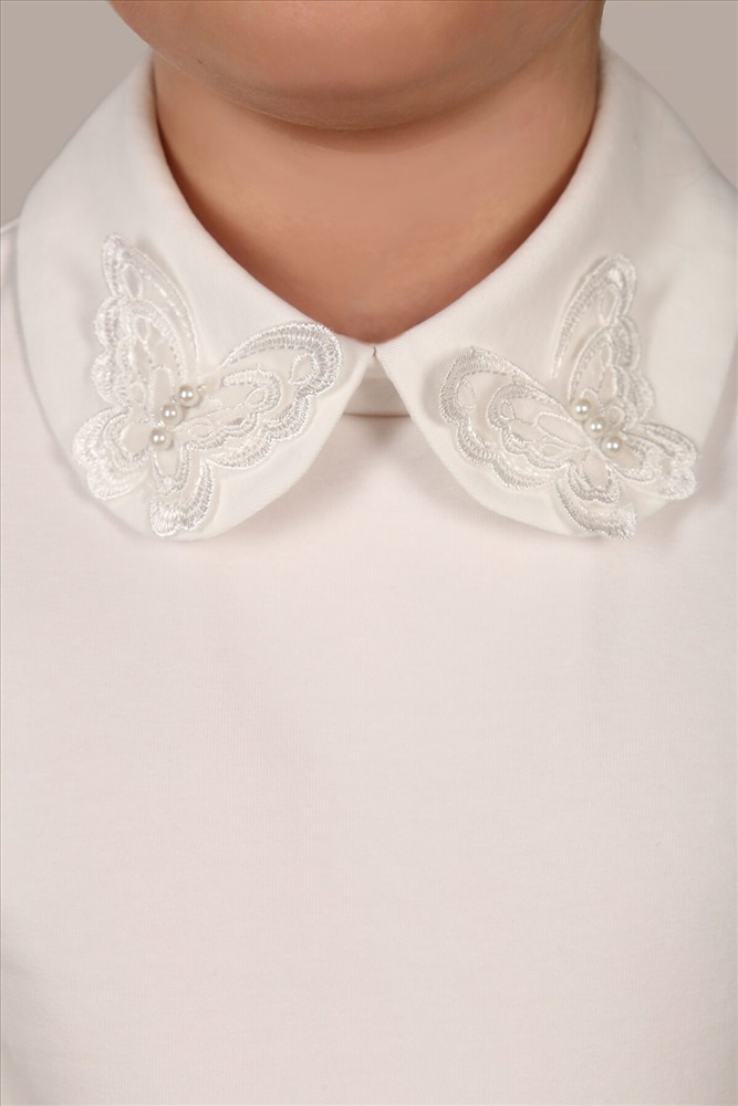 Страна производства: Россия Элегантная и нарядная блузка для вашей маленькой принцессы! Нежная трикотажная блуза для девочки станет замечательным выбором для 1 сентября. Ведь осень уже за углом и модная школьная форма для детей - это то, что совсем скоро понадобится каждому школьнику. Отложной воротник и рукава декорированы изящными кружевными бабочками. Стильная кружевная кофта лонгслив от бренда JerseyLab - это хлопок, нежный трикотаж, который прекрасно дышит и не вызовет аллергию, идеальный вариант для школы для детей и подростков. Такая блузка с длинным рукавом отлично подойдет и как повседневная детская кофточка и как нарядная блузка на праздник или на выпускной. Она превосходно будет смотреться и с различными детскими юбками, и со стильными и удобными брюками. Также очень стильный образ можно получить, сочетая ее со школьным или классическим сарафаном, или комбинезоном. Нежное кружево вокруг горловины придает изящность и оригинальность. Комбинируя эту блузу с различными жакетами и кардиганами, ваша маленькая модница сможет носить ее и в прохладное время года, как в демисезон, так и в зимний период. Пусть ваша стильняшка всегда чувствует себя самой красивой, а мы позаботимся о ее комфорте и безопасности, производя самую стильную и качественную одежду для детей!