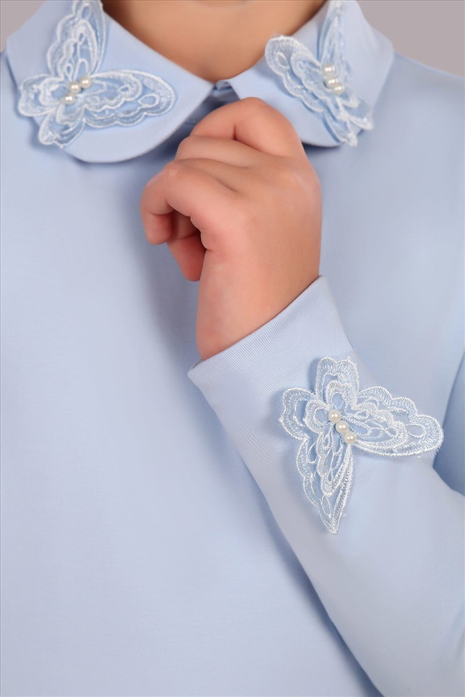 Страна производства: Россия Элегантная и нарядная блузка для вашей маленькой принцессы! Нежная трикотажная блуза для девочки станет замечательным выбором для 1 сентября. Ведь осень уже за углом и модная школьная форма для детей - это то, что совсем скоро понадобится каждому школьнику. Отложной воротник и рукава декорированы изящными кружевными бабочками. Стильная кружевная кофта лонгслив от бренда JerseyLab - это хлопок, нежный трикотаж, который прекрасно дышит и не вызовет аллергию, идеальный вариант для школы для детей и подростков. Такая блузка с длинным рукавом отлично подойдет и как повседневная детская кофточка и как нарядная блузка на праздник или на выпускной. Она превосходно будет смотреться и с различными детскими юбками, и со стильными и удобными брюками. Также очень стильный образ можно получить, сочетая ее со школьным или классическим сарафаном, или комбинезоном. Нежное кружево вокруг горловины придает изящность и оригинальность. Комбинируя эту блузу с различными жакетами и кардиганами, ваша маленькая модница сможет носить ее и в прохладное время года, как в демисезон, так и в зимний период. Пусть ваша стильняшка всегда чувствует себя самой красивой, а мы позаботимся о ее комфорте и безопасности, производя самую стильную и качественную одежду для детей!