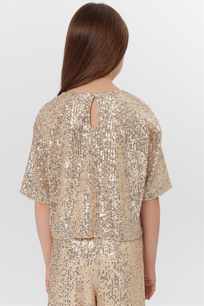 ID товара: 1220599 Состав: верх- 95% Полиэстер; 5% Эластан; подкладка- 92% Хлопок; 8% Эластан Сезон: Демисезон Длина: Средняя Фасон: Свободный Рукав: короткие Вырез горловины: Круглый Декоративные элементы: Без элементов Основная ткань: Полиэстер Стиль: Нарядный Уход: Деликатная стирка при 30 градусах Особенности модели: Нет Фактура материала: Кулирное полотно+сетка Страна бренда: Беларусь Страна производства: Беларусь Блузка прямого силуэта, выполнен из пайеток. Вырез горловины круглый. Рукава короткие. Спинка и полочка цельнокройные, спинка длиннее переда. По спинке застежка-капелька на одну петлю WT4-6 и пуговицу d=10mm. Комментарии к товару