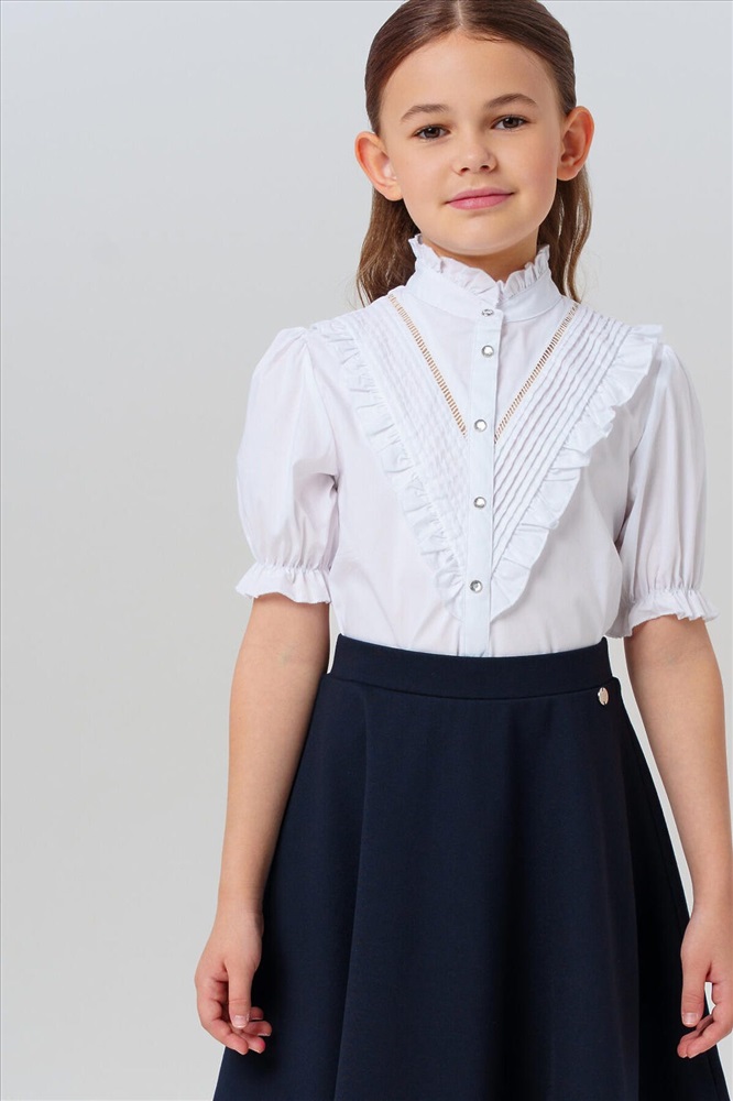 Идеальный вариант на 1 сентября и для повседневной носки! Эта текстильная блузка сочетает нарядный дизайн и комфорт для учебы.