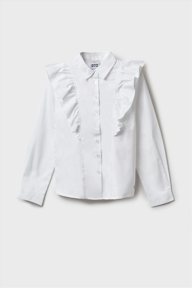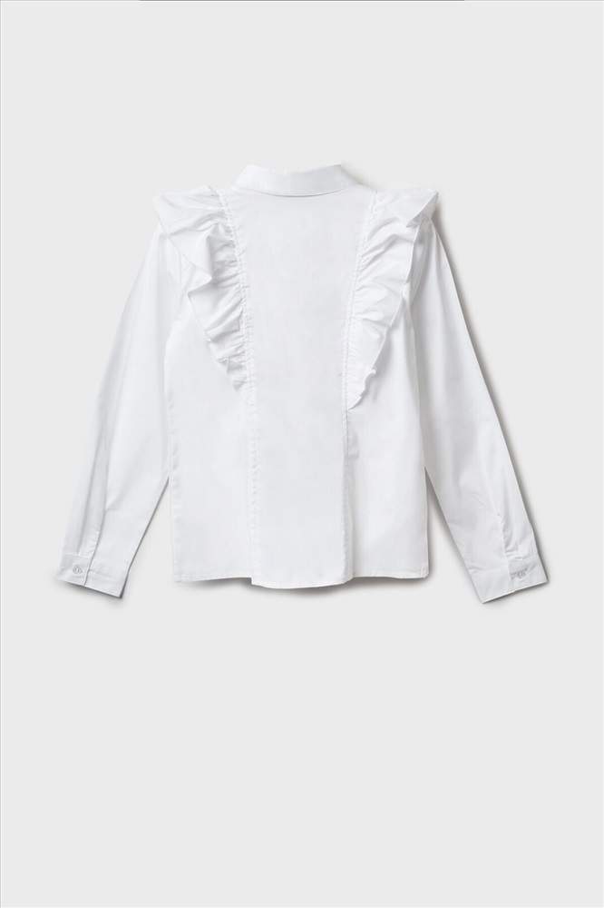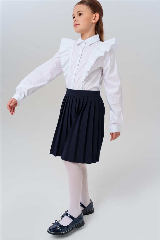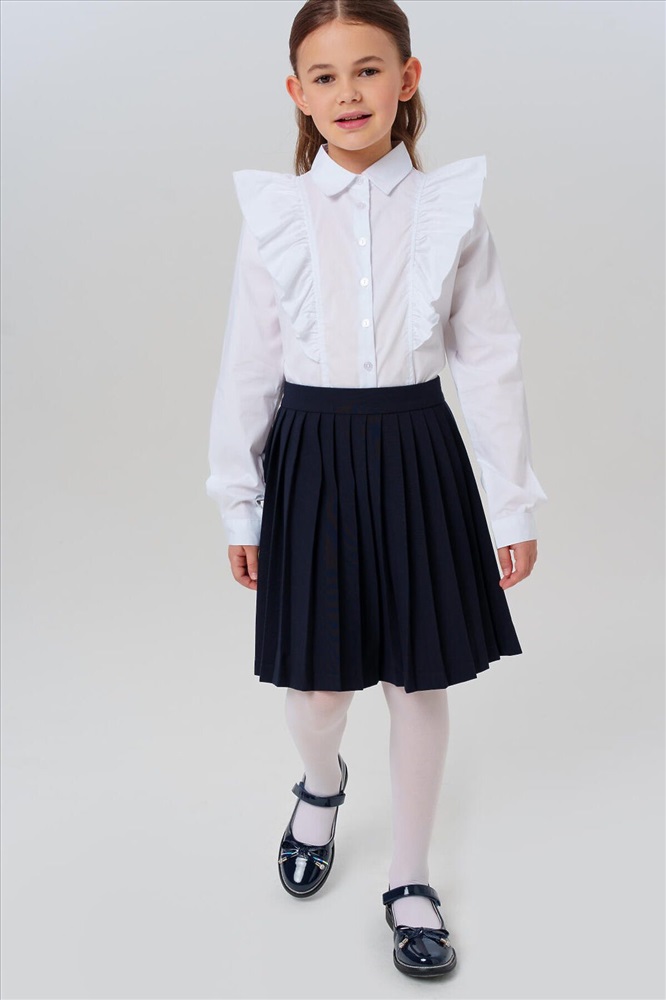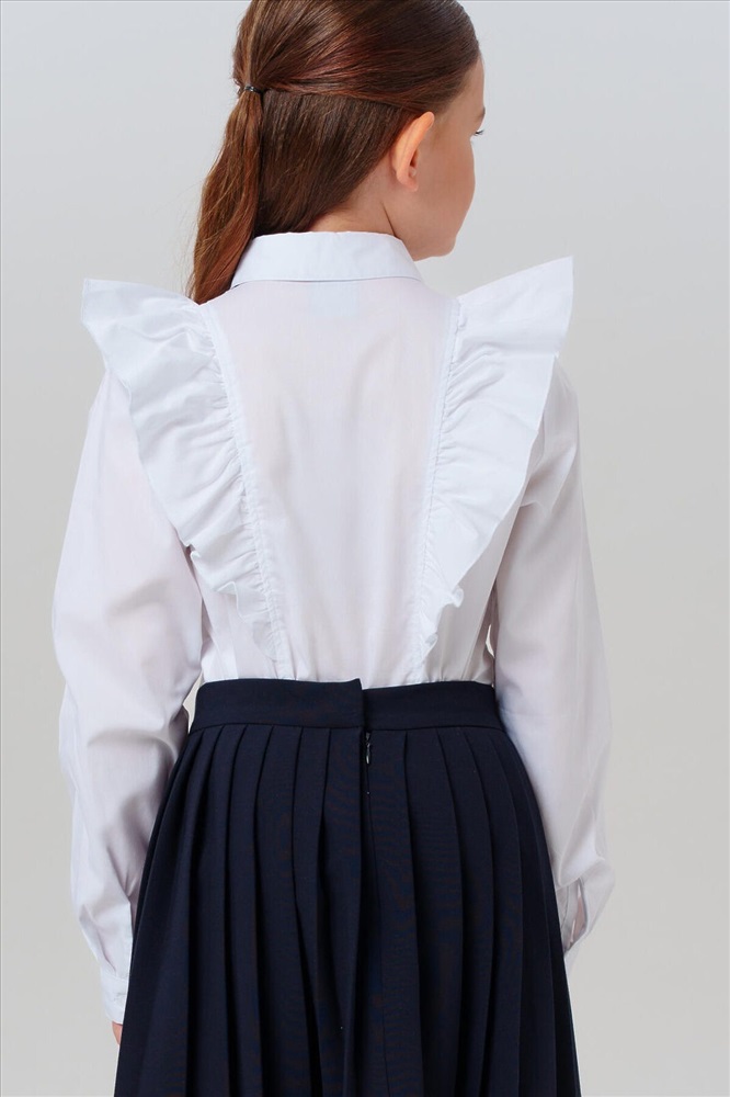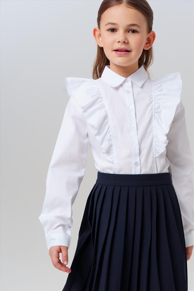 Страна производства: Китай Белая нарядная блузка для школы с воланами Идеальный вариант на 1 сентября и для повседневной носки! Эта текстильная блузка сочетает нарядный дизайн и комфорт для учебы.