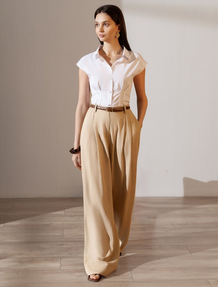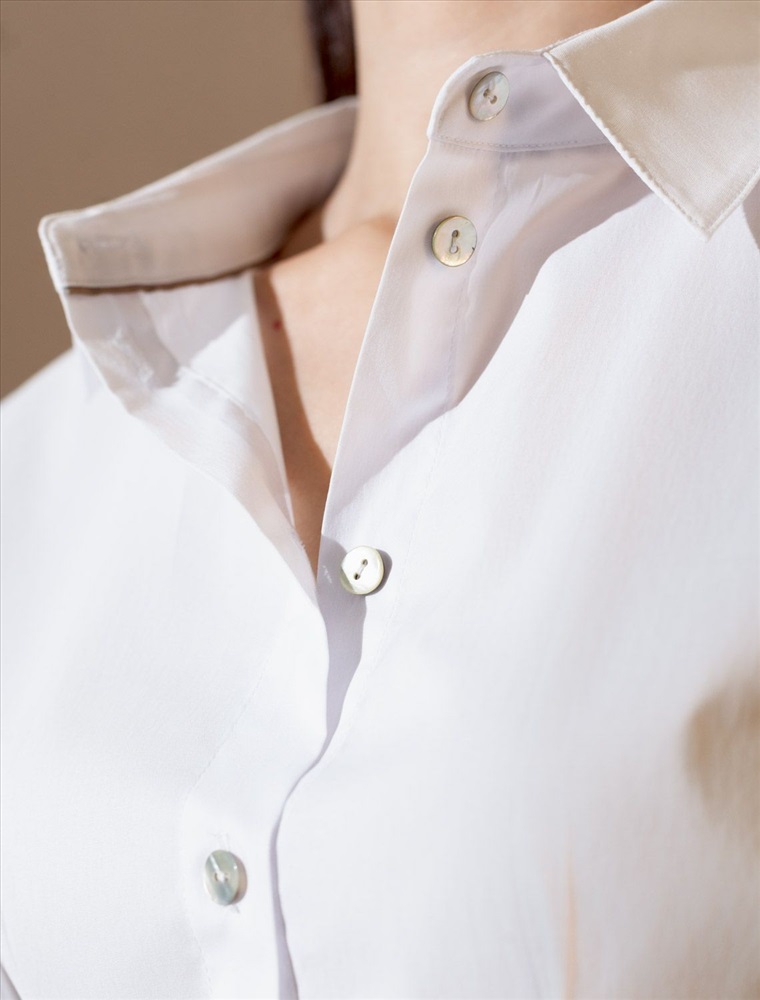 Изысканная женственная блузка белого цвета выполнена из легкого хлопкового поплина плотностью 96 Г/м2 и будет идеальна для создания комфортного и красивого образа в теплое время года. Натуральный материал отличается мягкостью и воздухопроницаемостью, что особенно ценно в жаркую погоду, а эластан в составе позволяет сохранить форму изделия. Основное преимущество повседневной блузки — аккуратный приталенный силуэт, подчеркивающий достоинства фигуры и создающий акцент на линии талии. Короткий цельнокроеный рукав придает образу свежесть и легкость. Однотонная рубашка с отложным воротничком подойдет для работы в офисе, встреч с друзьями, прогулок, для особого случая или праздника. Лаконичная легкая блузка отлично сочетается с разнообразными элементами гардероба, благодаря ей можно создать классический или романтичный образ.