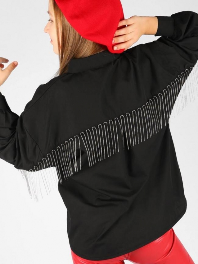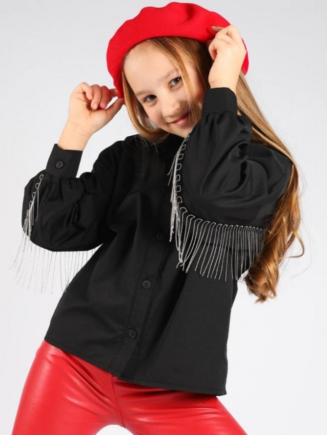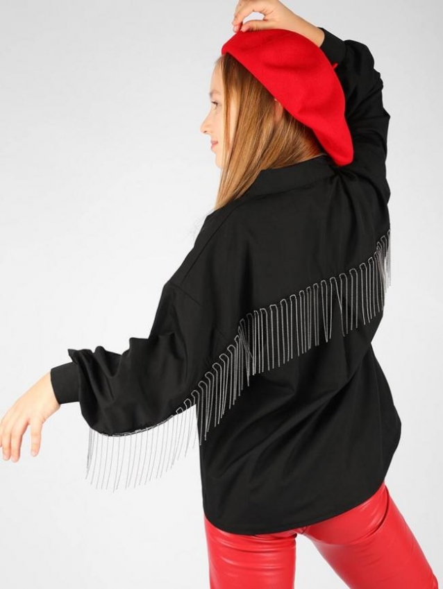 Блузка-рубашка с цепочками SP1018 (Черный)