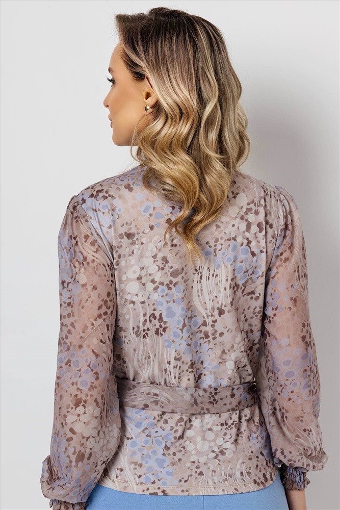 Блузка выполнена из трикотажного полотна, рукав-шифон. Воротник-стойка. Пояс из шифона. Элегантно смотрится, легко стирается, не теряет и не меняет цвет. Блузка представлена в ярких, современных и модных расцветках. Блузка станет неотъемлемой частью Вашего образа. Блузка прекрасно подходит для торжеств и повседневных мероприятий. Сочетайте блузу с брюками, юбками, и с любым типом обуви. Блузка бренда RISE - это стиль, качество и комфорт!Размер 46: длина рукава 60см, длина изделия 60см