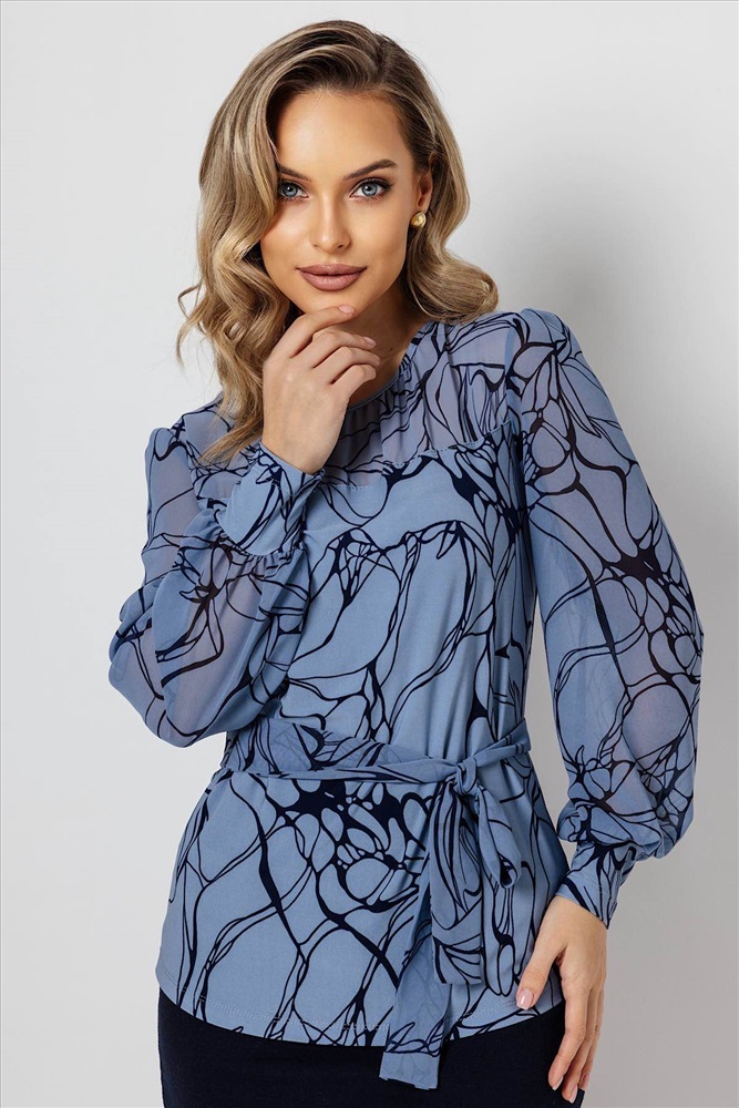 Блузка выполнена из трикотажного полотна, рукав длинный и пояс - шифон. Элегантно смотрится, легко стирается, не теряет и не меняет цвет. Так как в ткани используется большое количество вискозы, ткань дышащая и легко пропускает воздух, сохраняет форму и посадку даже после многочисленных стирок. Блуза представлена в ярких, современных и модных расцветках. Блузка станет неотъемлимой частью Вашего образа. Блуза прекрасно подходит для торжеств и повседневных мероприятий. Сочетайте блузу с брюками, юбками, и с любым типом обуви. Блузка бренда RISE - это стиль, качество и комфорт!