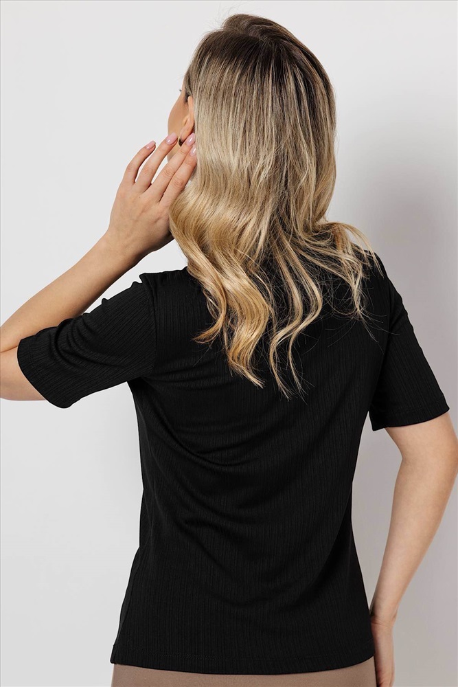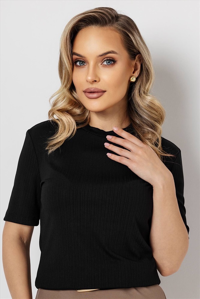 Блузка трикотажная, короткий рукав, визуально стройнит. В состав входит вискоза, что делает блузку уютной и стильной. Не мнется, сохраняет цвет и форму после многочисленных стирок (при условии соблюдения правил ухода).
