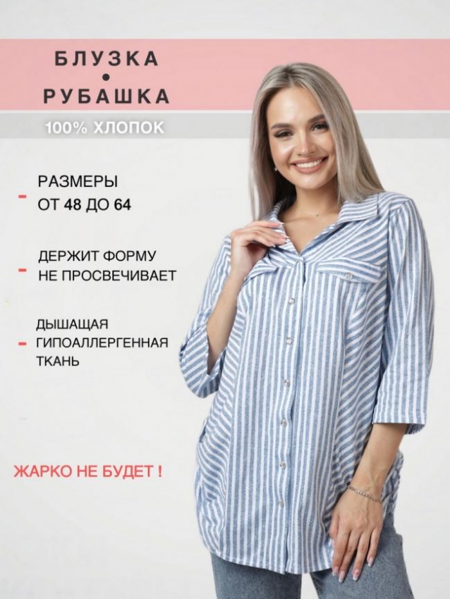 Классическая блуза – униформа офисных работниц. Чтобы не сливаться с коллегами и не стать похожей на них, многие женщины ищут необычные фасоны и расцветки. Эта модель сделает красавицей любую представительницу женского пола. Даже если дама не обладает идеальными параметрами и формами, фасон рубашки скроет эти недостатки. При этом блуза не выглядит слишком большой или бесформенной. Рубашка пошита из 100% хлопка. Она не парит в жаркую погоду, а когда прохладно, ее можно надеть с жакетом или накинуть сверху теплую кофту. Классический принт в полоску всегда был и будет актуален, поэтому эта блуза никогда не выйдет из моды. Строгий офисный стиль немного разбавляют пуговицы в виде кристаллов. С помощью специального хлястика и пуговицы дизайнеры компании Еленатекс предусмотрели возможность присобрать блузу по боковым швам снизу. Так она выглядит более короткой и больше идет к классическим юбкам-карандашам, прямым брюкам. Летом концы рубашки можно завязать узлом спереди и носить ее с шортами Комментарии к товару