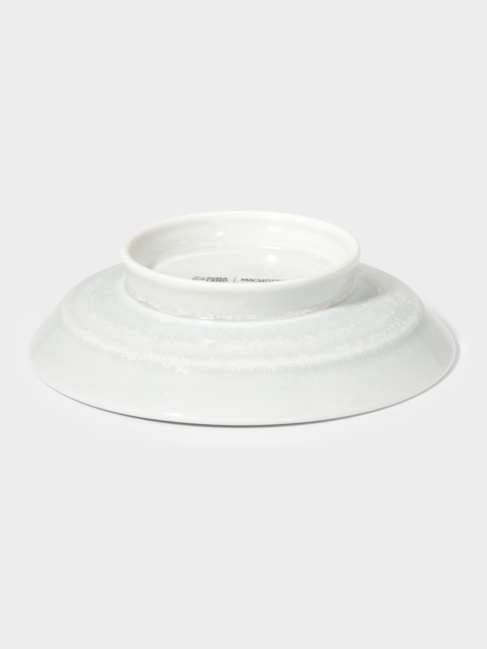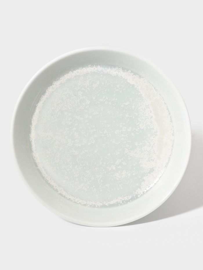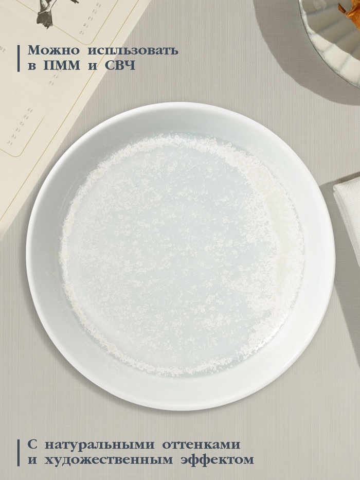 Представьте себе, как сочные фрукты, словно драгоценные камни, переливаются на этом изысканном блюде. Этот фарфоровый шедевр, выполненный в нежном голубом цвете с деликатным перламутровым сиянием, превратит обычную подачу фруктов в настоящее искусство. Изящный рисунок в виде капель создает легкую, воздушную атмосферу.