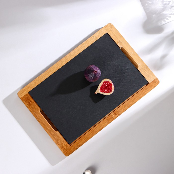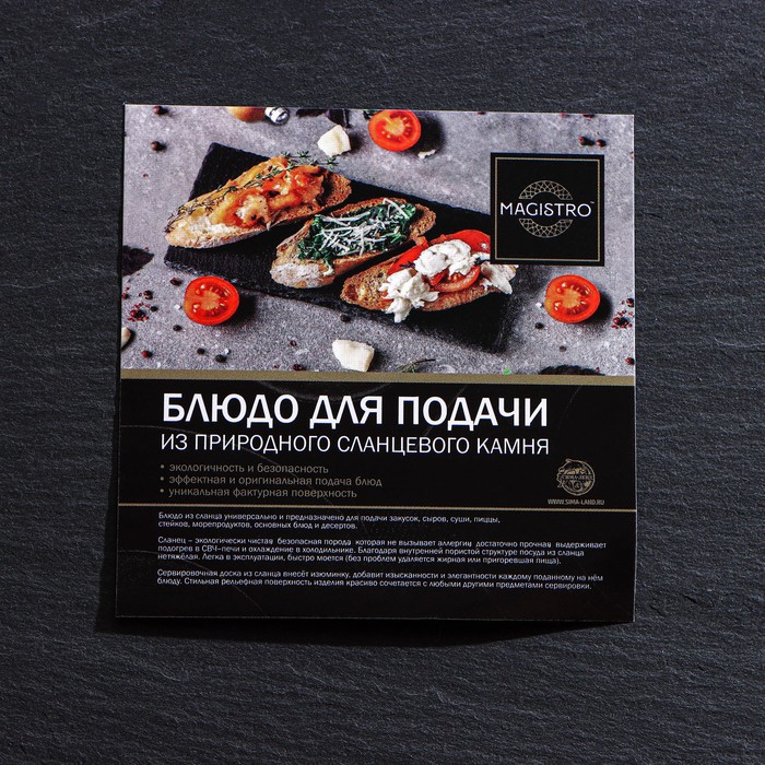 Блюдо из натурального сланцевого камня поможет эффектно подать блюдо. Стильная рельефная поверхность изделия красиво сочетается с другими предметами сервировки и подходит ко всем видам блюд.