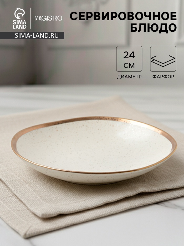 Блюдо фарфоровое сервировочное Magistro Poursephona, d=24 см, бежевый