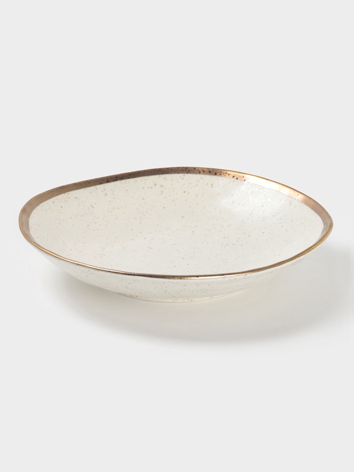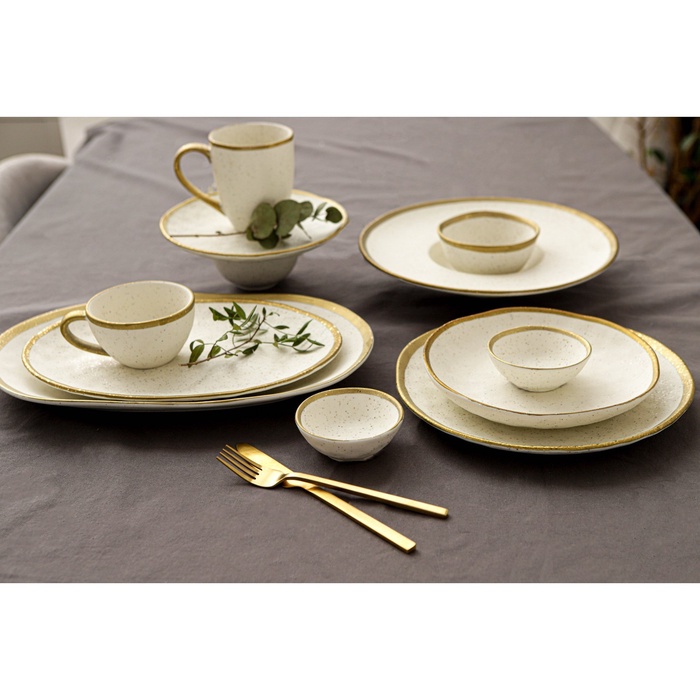 Посуда серии Magistro Poursephona — это современная фарфоровая посуда. В оформлении серии превалируют два цвета – бежевый оттенок фарфора и роскошное золото в виде широкой окантовки предметов. Идеально подходит как для формального обеда, так и для торжеств по особым случаям. Лаконичные формы, золотая окантовка, разноцветные вкрапления придают изделиям из фарфора одновременно необычный и современный вид.