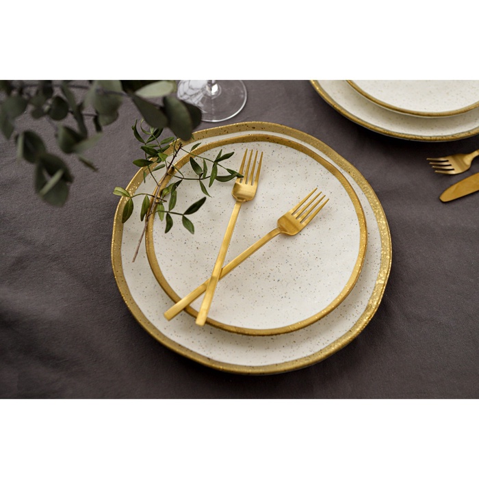 Матовая поверхность посуды с золотой отводкой требует деликатного обращения. Нельзя использовать агрессивные чистящие средства и абразивные губки, а также скоблить металлическими приборами по изделию во избежание порчи покрытия.