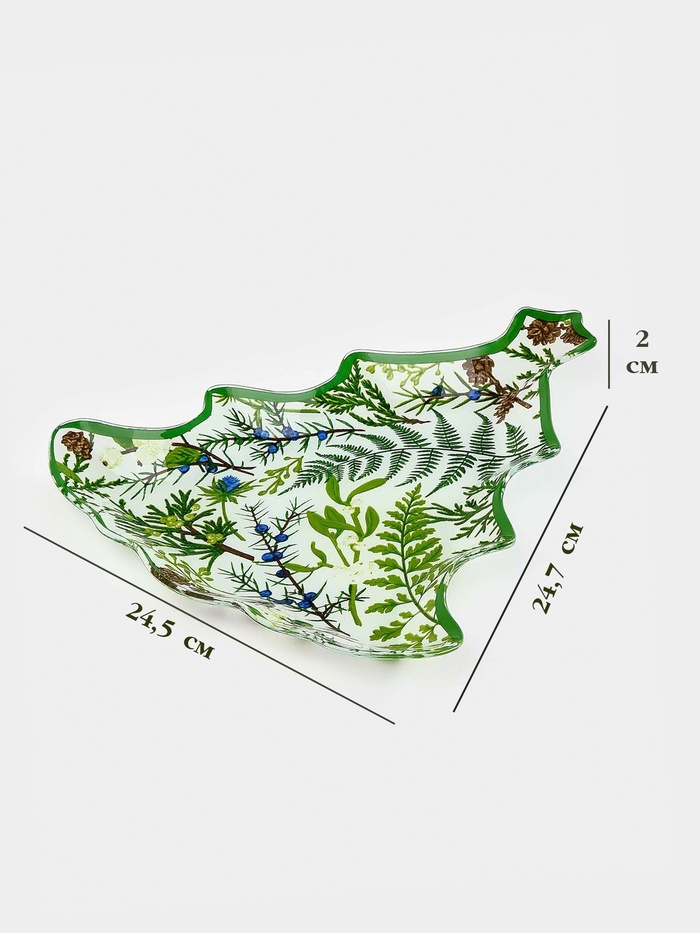 Особенности использования: Изделие демонстрирует красоту, но требует аккуратного обращения. Стекло не предназначено для мытья в посудомоечной машине и использования в микроволновой печи. Ручной уход сохранит яркость рисунка и безупречный вид блюда на многие годы. «Еловые ветки» — готовое решение для сервировки новогоднего и рождественского стола. Оно подходит для подачи канапе, фруктов, конфет или печенья, превращая обычные угощения в часть праздничной сказки. Комментарии к товару