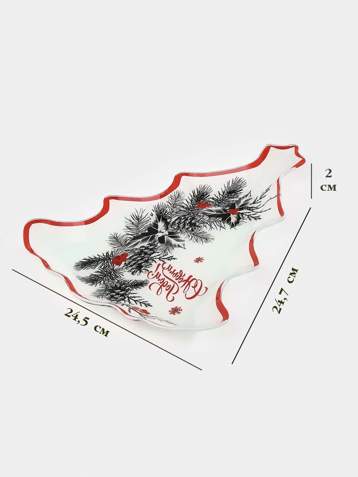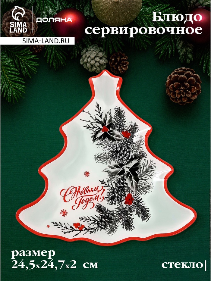 Сервировочное блюдо «С Новым Годом» — это изящная и праздничная посуда для подачи угощений. Фигурная форма в виде ёлки и яркий декор превращают любое блюдо в элемент новогоднего декора.