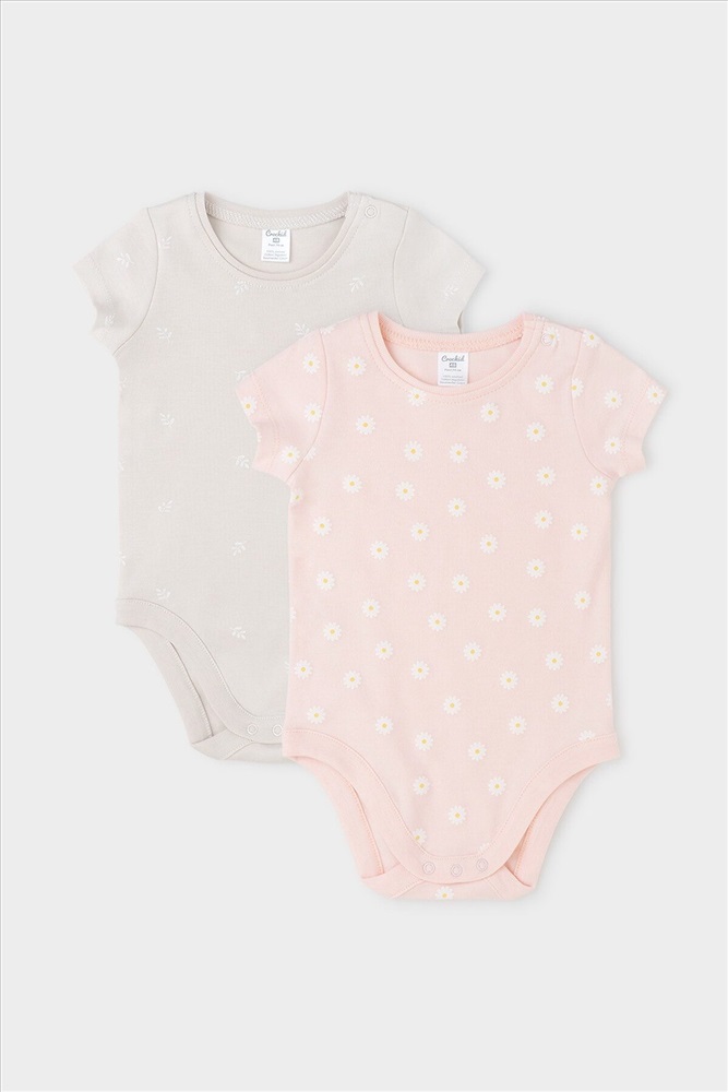 Боди в упаковке 2 шт для новорожденных из мягкого, эластичного трикотажа произведенного из натурального хлопка. Изделие застегивается на кнопки. Оригинальная набивка выполнена из стойких, гипоаллергенных, текстильных красителей. Все трикотажные полотна производятся в соответсвии с нормами Швейцарского сертификата ЭкоТекс.