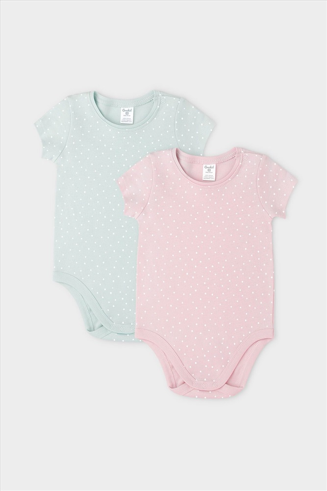 Боди в упаковке 2 шт для новорожденных из мягкого, эластичного трикотажа произведенного из натурального хлопка. Изделие застегивается на кнопки. Оригинальная набивка выполнена из стойких, гипоаллергенных, текстильных красителей. Все трикотажные полотна производятся в соответсвии с нормами Швейцарского сертификата ЭкоТекс.
