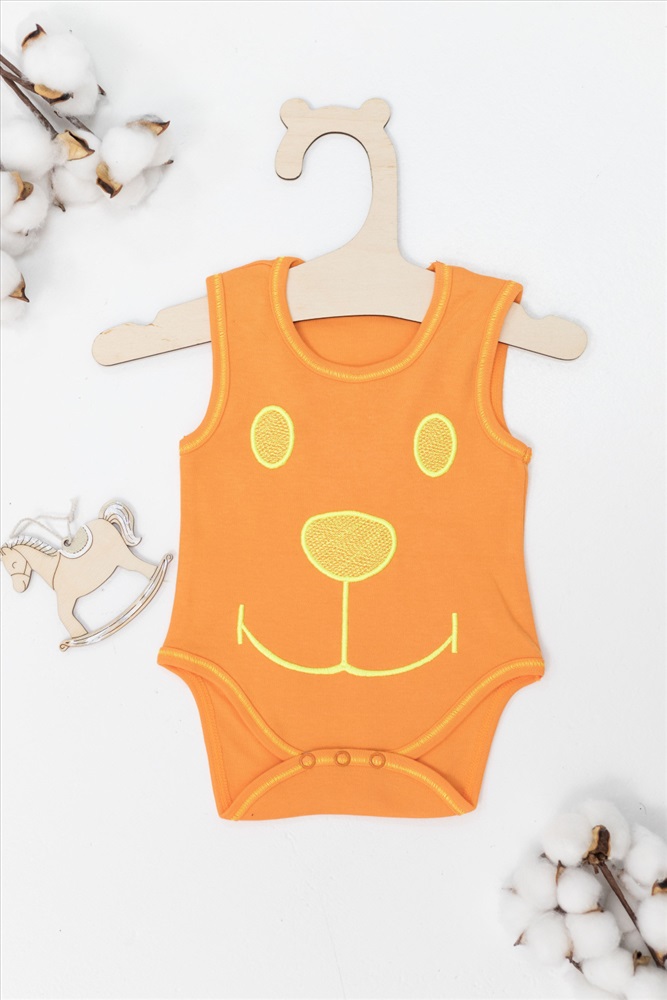 Цвет Номенклатуры: оранжевый Боди для малышей из 100% хлопкового полотна. Без рукавов, спереди с вышивкой, внизу застёжка на кнопки.