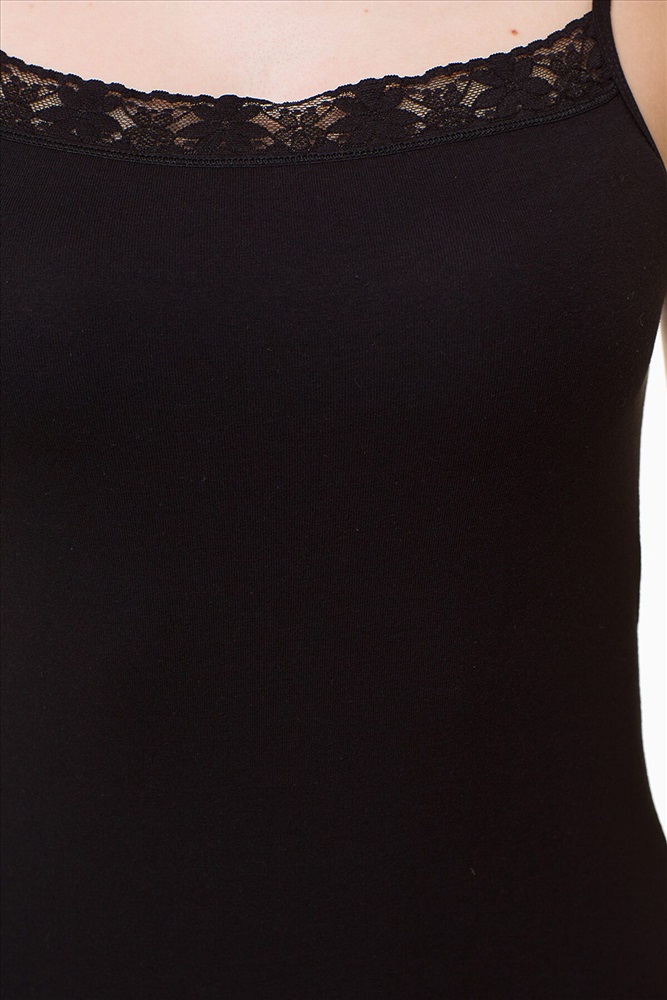 Прилегающий боди на лямках, подчеркивает силуэт и визуально делает фигуру более стройной. Сверху декорирован романтичным кружевом. Можно носить как самостоятельную модель, либо фантазировать и совмещать с другими вещами. Застежка на кнопки.
