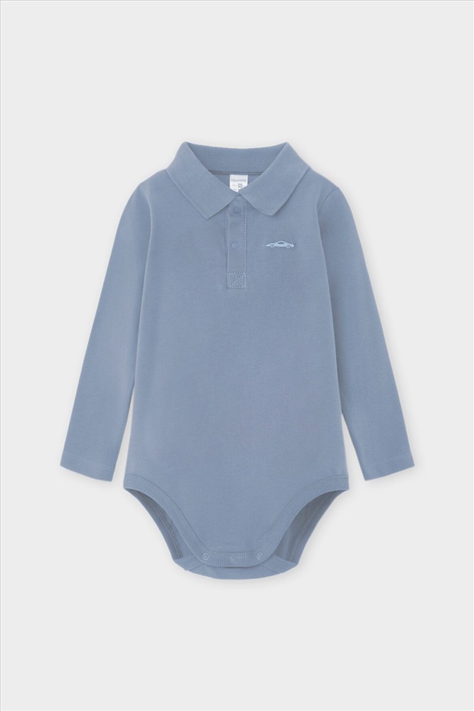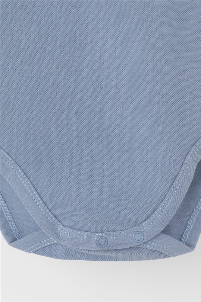 Боди для мальчика из трикотажного полотна пике. Вязаный воротник. Удобная застежка спереди.