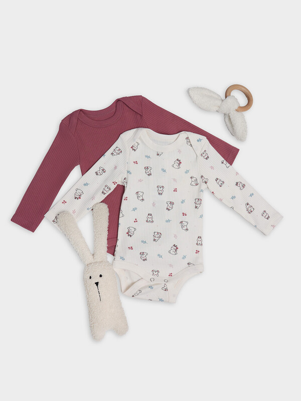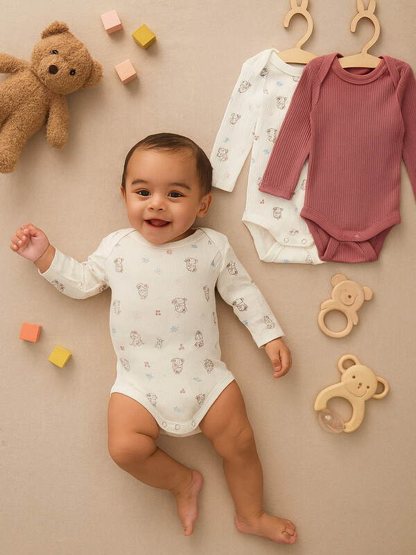 Низ боди застегивается на удобные кнопки-книпперы, которые надежно фиксируют изделие и упрощают одевание. Эти боди для новорожденных идеальны для сна, прогулок и домашнего отдыха. Если вы ищете, где купить детское боди в наборе, этот вариант станет отличным выбором благодаря качественным материалам и продуманным деталям.