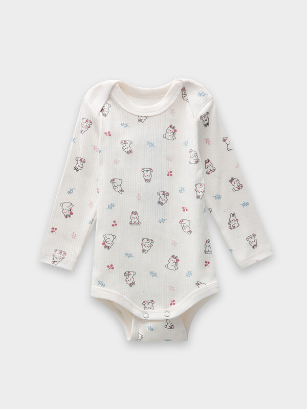 Специальная кокетка на спинке и удлиненная вставка между ножек упрощают смену подгузника. Круглая горловина и все края изделия обработаны эластичной мягкой резинкой, которая нежно облегает тело, не сдавливая и не натирая. Длинные рукава с аккуратно подогнутыми краями не сползают и сохраняют тепло.