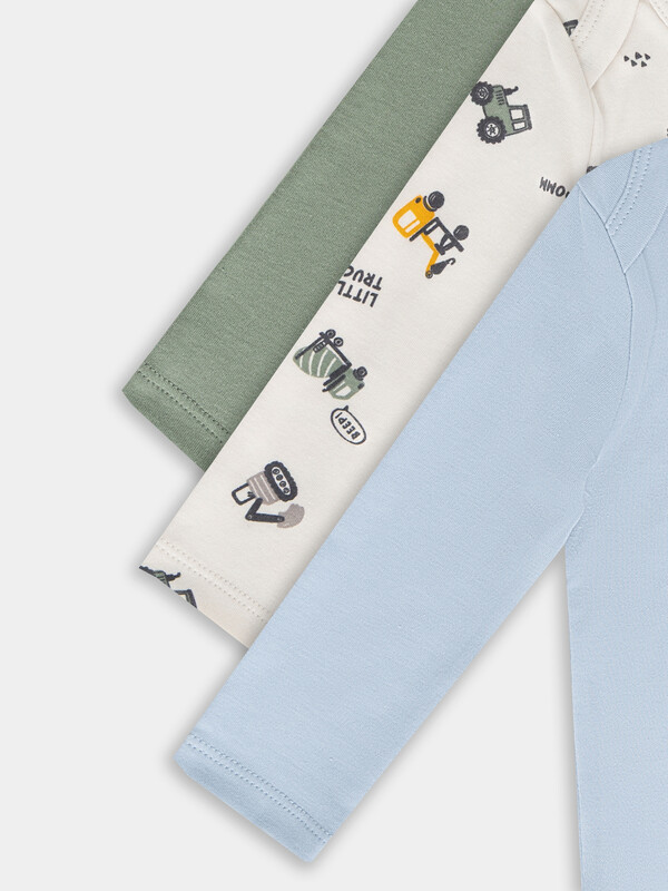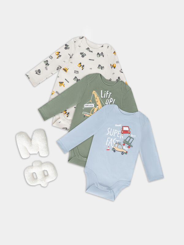 Набор из трех детских боди — это практичное решение для ежедневной носки. Изделия выполнены из хлопкового интерлока, который хорошо держит форму, пропускает воздух и не раздражает чувствительную кожу ребенка.